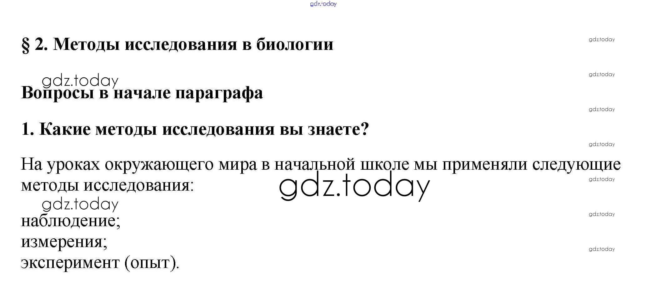 На страницах сайта gdz.today вы найдете учебный и вспомогательный материал, направленный на улучшения знаний школьной программы. ГДЗ - онлайн мир знаний Вопросы в начале параграфа Решение к §2 1 Учебнику по Биологии для 5 класса Пасечник Дрофа УМК 2016