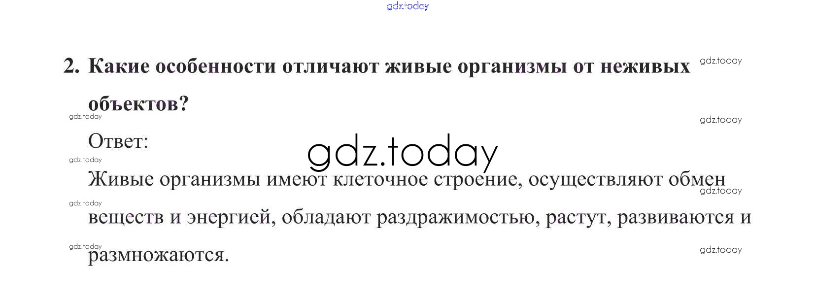 На страницах сайта gdz.today вы найдете учебный и вспомогательный материал, направленный на улучшения знаний школьной программы. ГДЗ - онлайн мир знаний Вопросы в конце параграфа Решение к §3 2 Учебнику по Биологии для 5 класса Пасечник Дрофа УМК 2016
