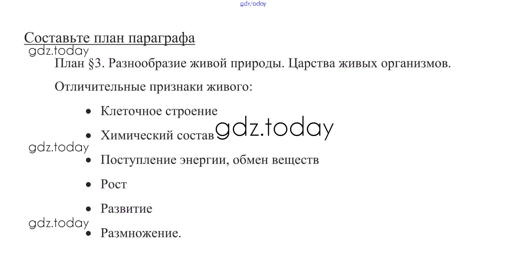 На страницах сайта gdz.today вы найдете учебный и вспомогательный материал, направленный на улучшения знаний школьной программы. ГДЗ - онлайн мир знаний Задания Решение к §3 1 Учебнику по Биологии для 5 класса Пасечник Дрофа УМК 2016