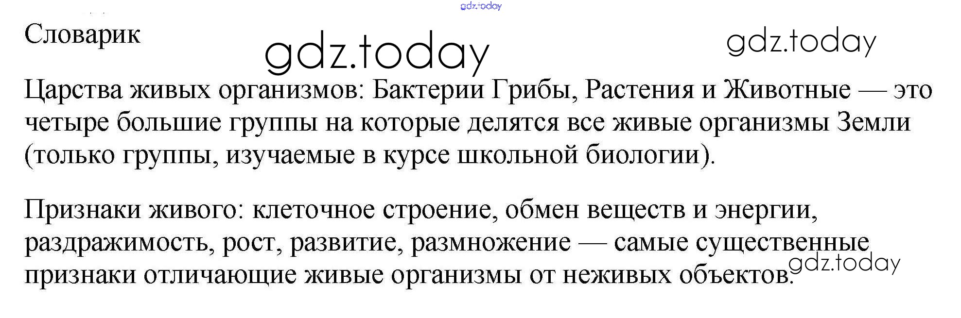 На страницах сайта gdz.today вы найдете учебный и вспомогательный материал, направленный на улучшения знаний школьной программы. ГДЗ - онлайн мир знаний Словарик Решение к §3 1 Учебнику по Биологии для 5 класса Пасечник Дрофа УМК 2016