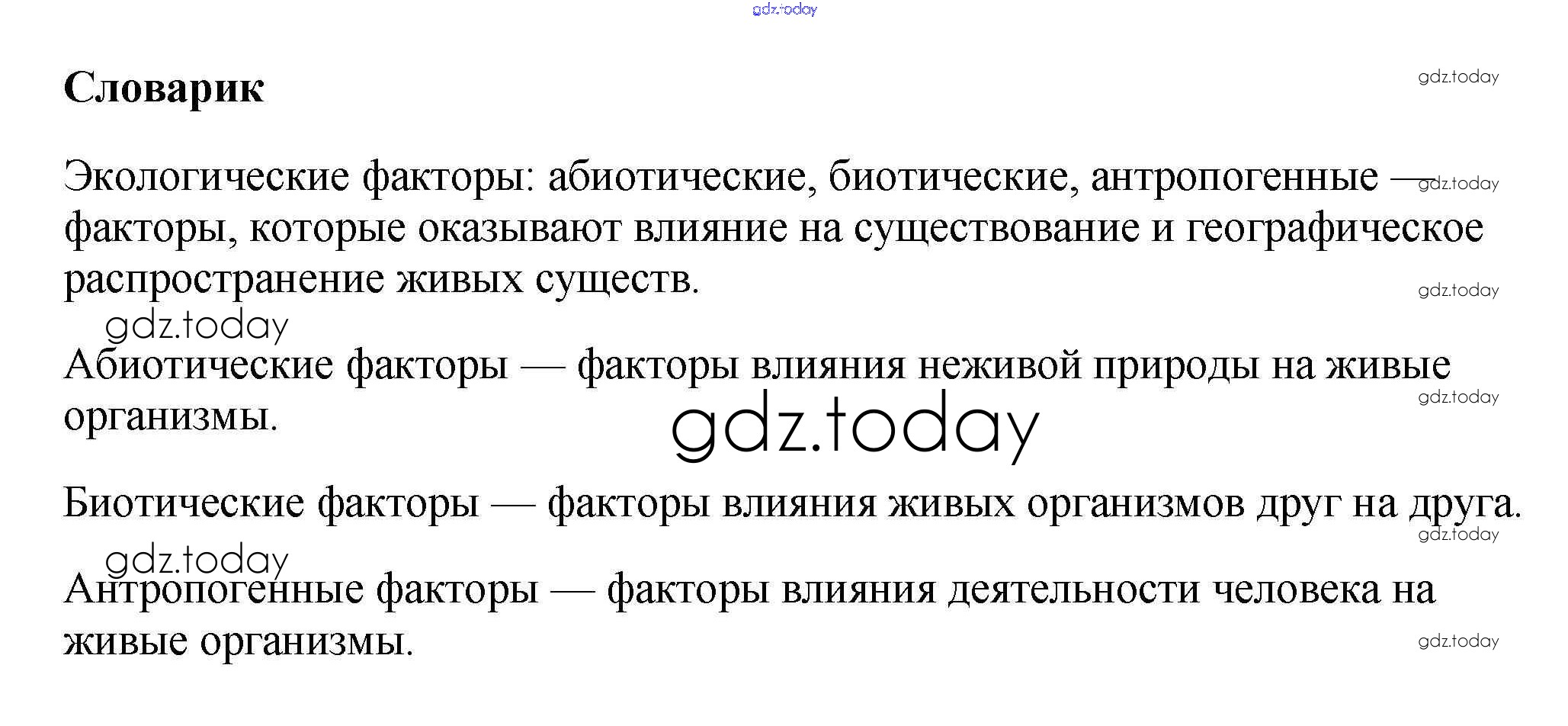 На страницах сайта gdz.today вы найдете учебный и вспомогательный материал, направленный на улучшения знаний школьной программы. ГДЗ - онлайн мир знаний Словарик Решение к §5 1 Учебнику по Биологии для 5 класса Пасечник Дрофа УМК 2016