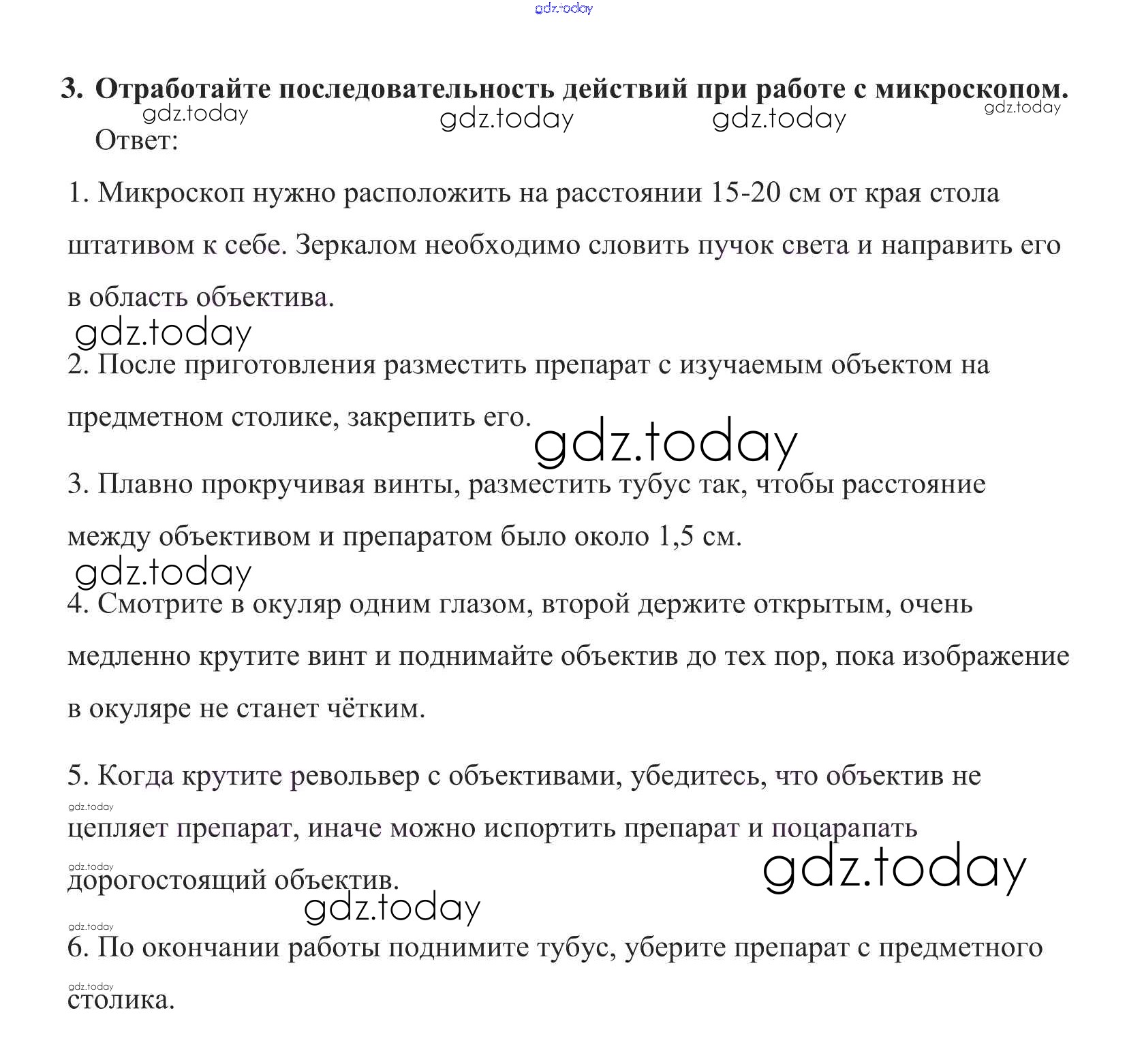 На страницах сайта gdz.today вы найдете учебный и вспомогательный материал, направленный на улучшения знаний школьной программы. ГДЗ - онлайн мир знаний Устройство микроскопа и приёмы работы с ним Решение к §6 3 Учебнику по Биологии для 5 класса Пасечник Дрофа УМК 2016
