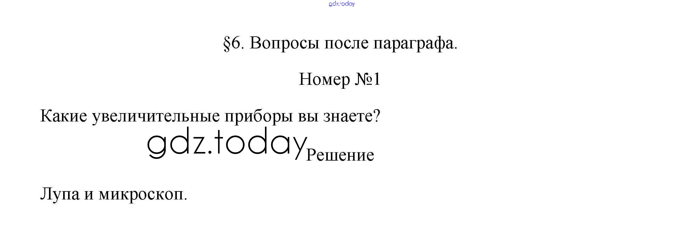На страницах сайта gdz.today вы найдете учебный и вспомогательный материал, направленный на улучшения знаний школьной программы. ГДЗ - онлайн мир знаний Вопросы в конце параграфа Решение к §6 1 Учебнику по Биологии для 5 класса Пасечник Дрофа УМК 2016