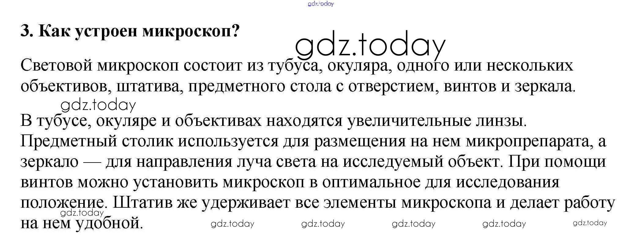 На страницах сайта gdz.today вы найдете учебный и вспомогательный материал, направленный на улучшения знаний школьной программы. ГДЗ - онлайн мир знаний Вопросы в конце параграфа Решение к §6 3 Учебнику по Биологии для 5 класса Пасечник Дрофа УМК 2016
