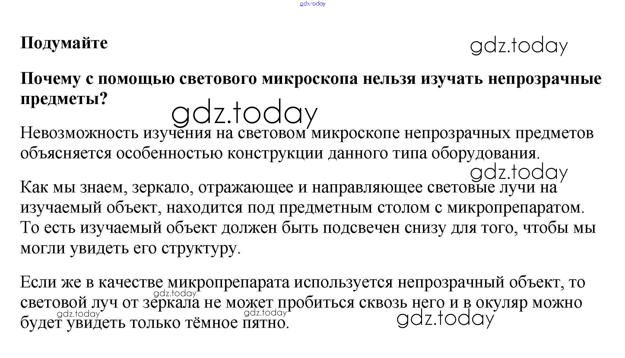 На страницах сайта gdz.today вы найдете учебный и вспомогательный материал, направленный на улучшения знаний школьной программы. ГДЗ - онлайн мир знаний Подумайте Решение к §6 1 Учебнику по Биологии для 5 класса Пасечник Дрофа УМК 2016