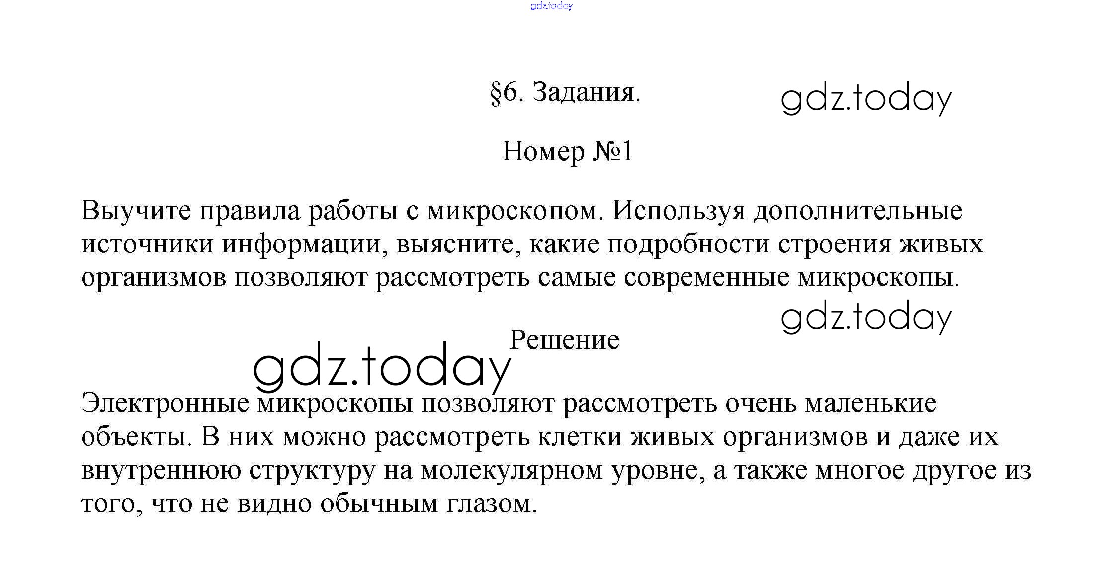 На страницах сайта gdz.today вы найдете учебный и вспомогательный материал, направленный на улучшения знаний школьной программы. ГДЗ - онлайн мир знаний Задания Решение к §6 1 Учебнику по Биологии для 5 класса Пасечник Дрофа УМК 2016