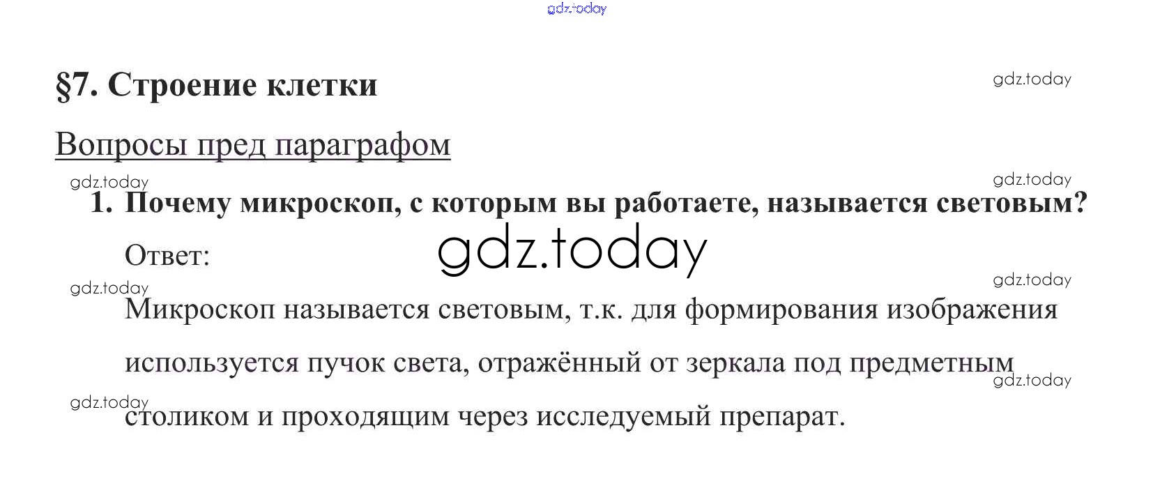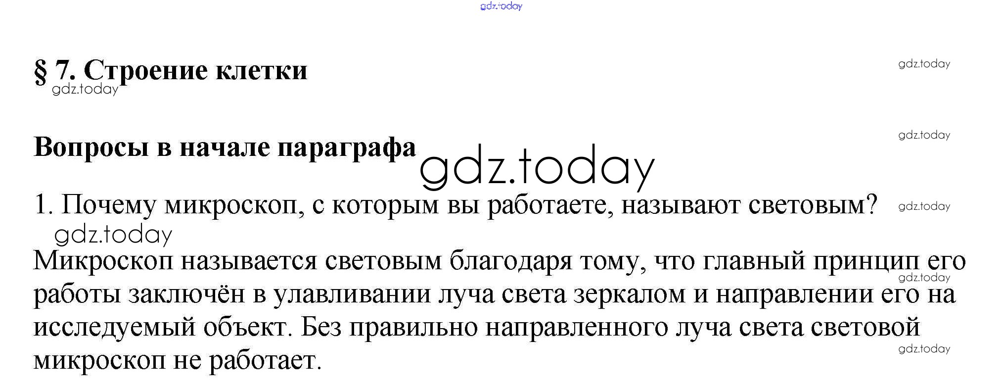 На страницах сайта gdz.today вы найдете учебный и вспомогательный материал, направленный на улучшения знаний школьной программы. ГДЗ - онлайн мир знаний Вопросы в начале параграфа Решение к §7 1 Учебнику по Биологии для 5 класса Пасечник Дрофа УМК 2016