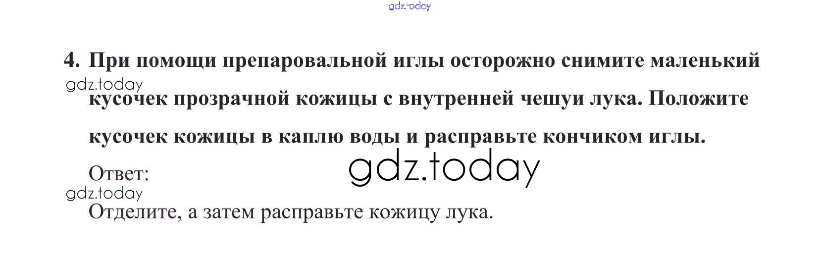 На страницах сайта gdz.today вы найдете учебный и вспомогательный материал, направленный на улучшения знаний школьной программы. ГДЗ - онлайн мир знаний Приготовление и рассматривание препарата кожицы чешуи лука под микроскопом Решение к §7 4 Учебнику по Биологии для 5 класса Пасечник Дрофа УМК 2016