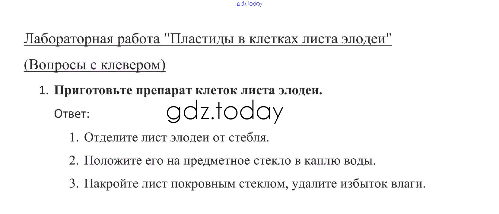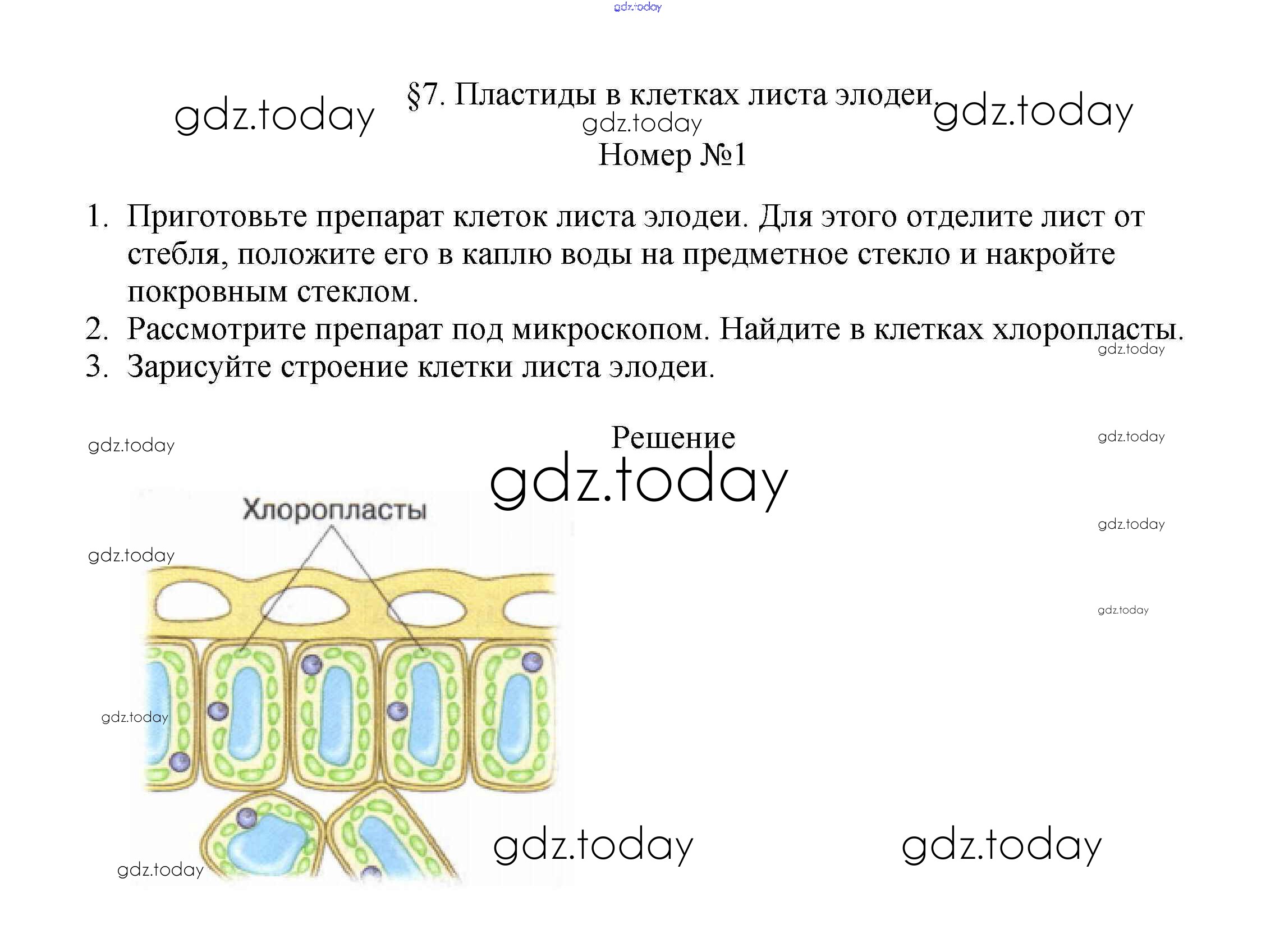 На страницах сайта gdz.today вы найдете учебный и вспомогательный материал, направленный на улучшения знаний школьной программы. ГДЗ - онлайн мир знаний Пластиды в клетках листа элодеи Решение к §7 1 Учебнику по Биологии для 5 класса Пасечник Дрофа УМК 2016