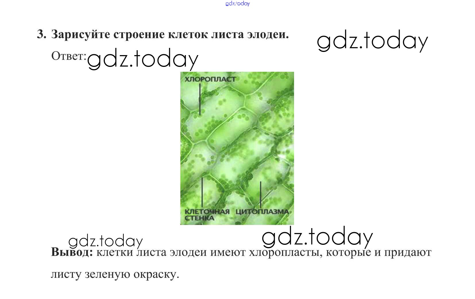 На страницах сайта gdz.today вы найдете учебный и вспомогательный материал, направленный на улучшения знаний школьной программы. ГДЗ - онлайн мир знаний Пластиды в клетках листа элодеи Решение к §7 3 Учебнику по Биологии для 5 класса Пасечник Дрофа УМК 2016