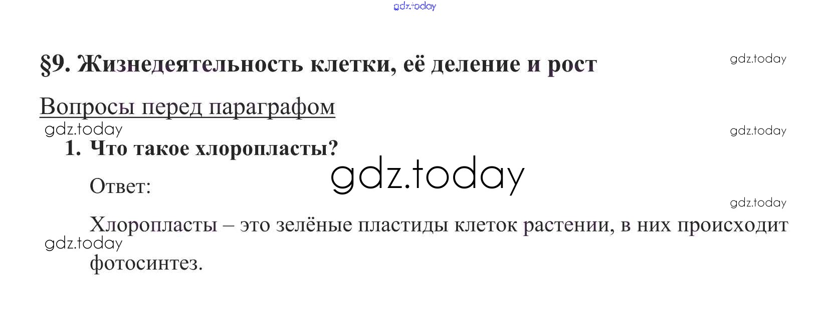 На страницах сайта gdz.today вы найдете учебный и вспомогательный материал, направленный на улучшения знаний школьной программы. ГДЗ - онлайн мир знаний Вопросы в начале параграфа Решение к §9 1 Учебнику по Биологии для 5 класса Пасечник Дрофа УМК 2016