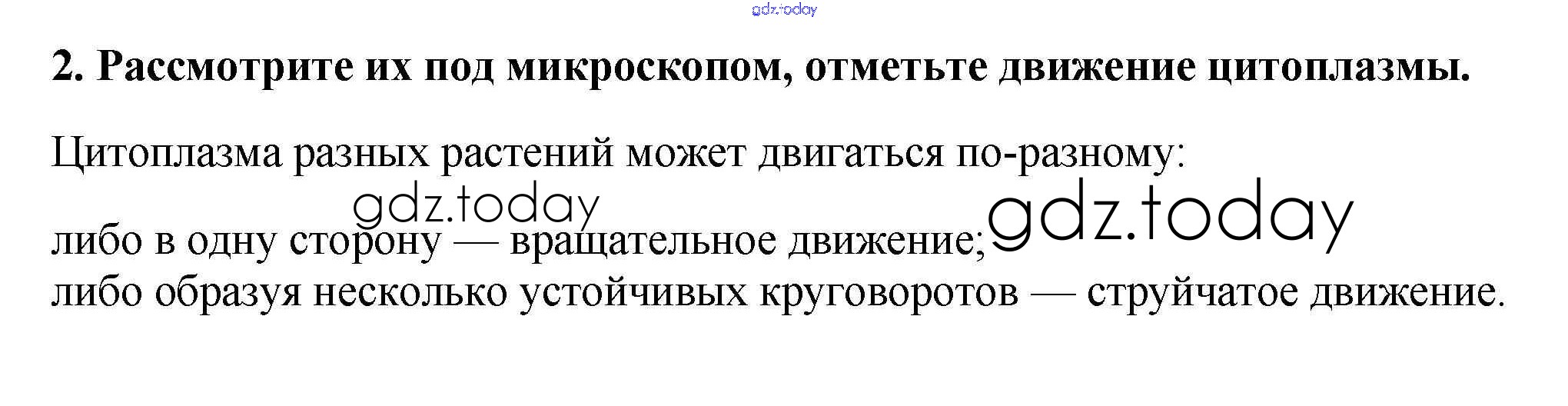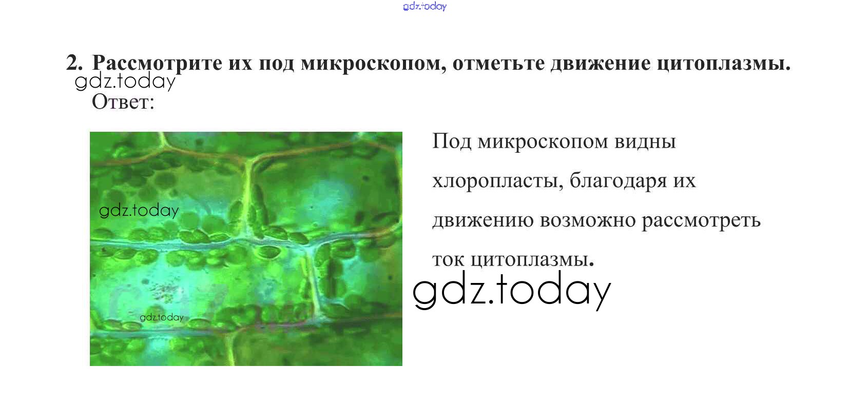 На страницах сайта gdz.today вы найдете учебный и вспомогательный материал, направленный на улучшения знаний школьной программы. ГДЗ - онлайн мир знаний Наблюдение движения цитоплазмы Решение к §9 2 Учебнику по Биологии для 5 класса Пасечник Дрофа УМК 2016