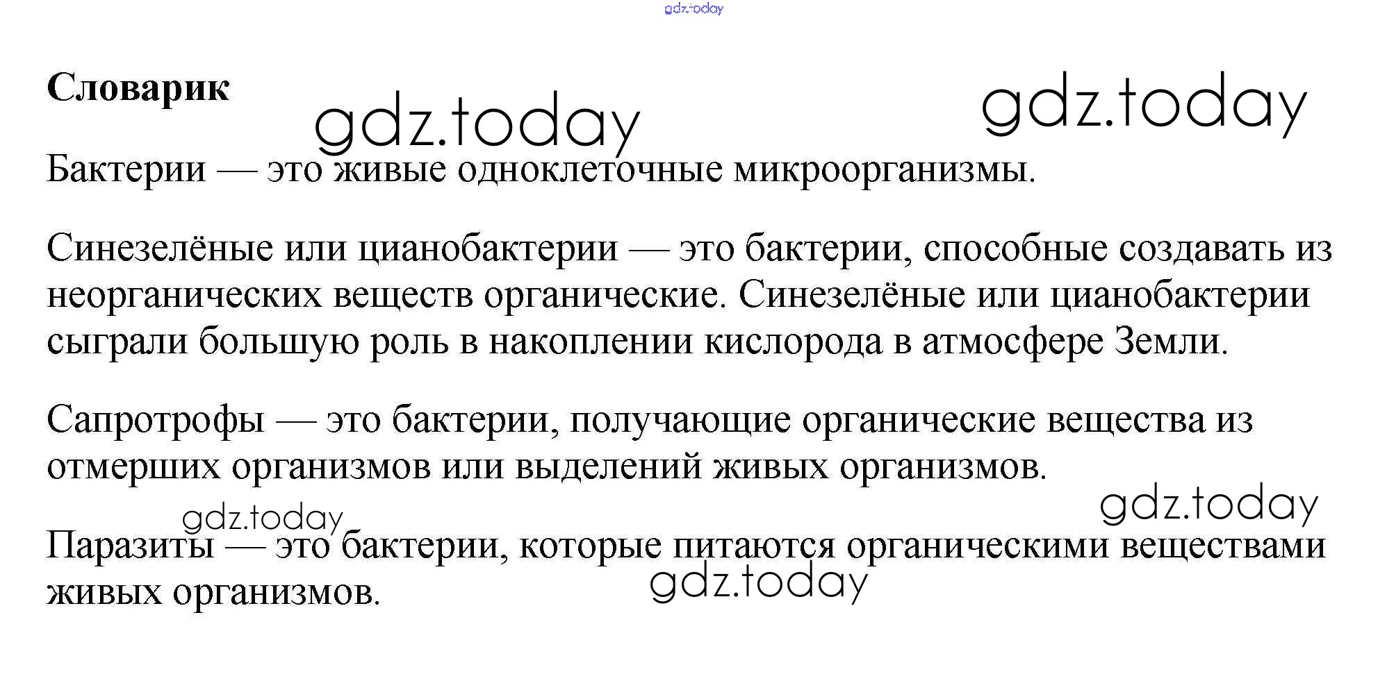 На страницах сайта gdz.today вы найдете учебный и вспомогательный материал, направленный на улучшения знаний школьной программы. ГДЗ - онлайн мир знаний Словарик Решение к §11 1 Учебнику по Биологии для 5 класса Пасечник Дрофа УМК 2016