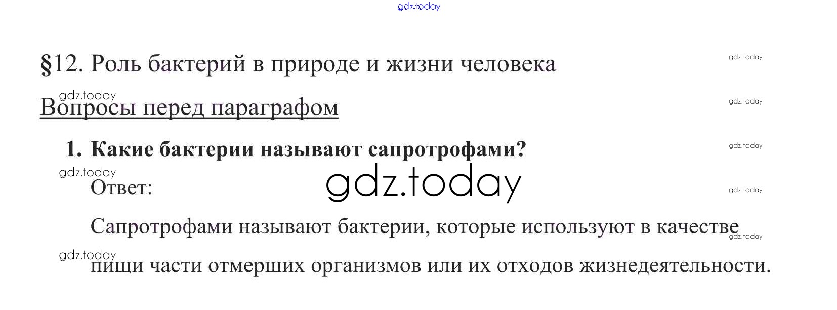 На страницах сайта gdz.today вы найдете учебный и вспомогательный материал, направленный на улучшения знаний школьной программы. ГДЗ - онлайн мир знаний Вопросы в начале параграфа Решение к §12 1 Учебнику по Биологии для 5 класса Пасечник Дрофа УМК 2016