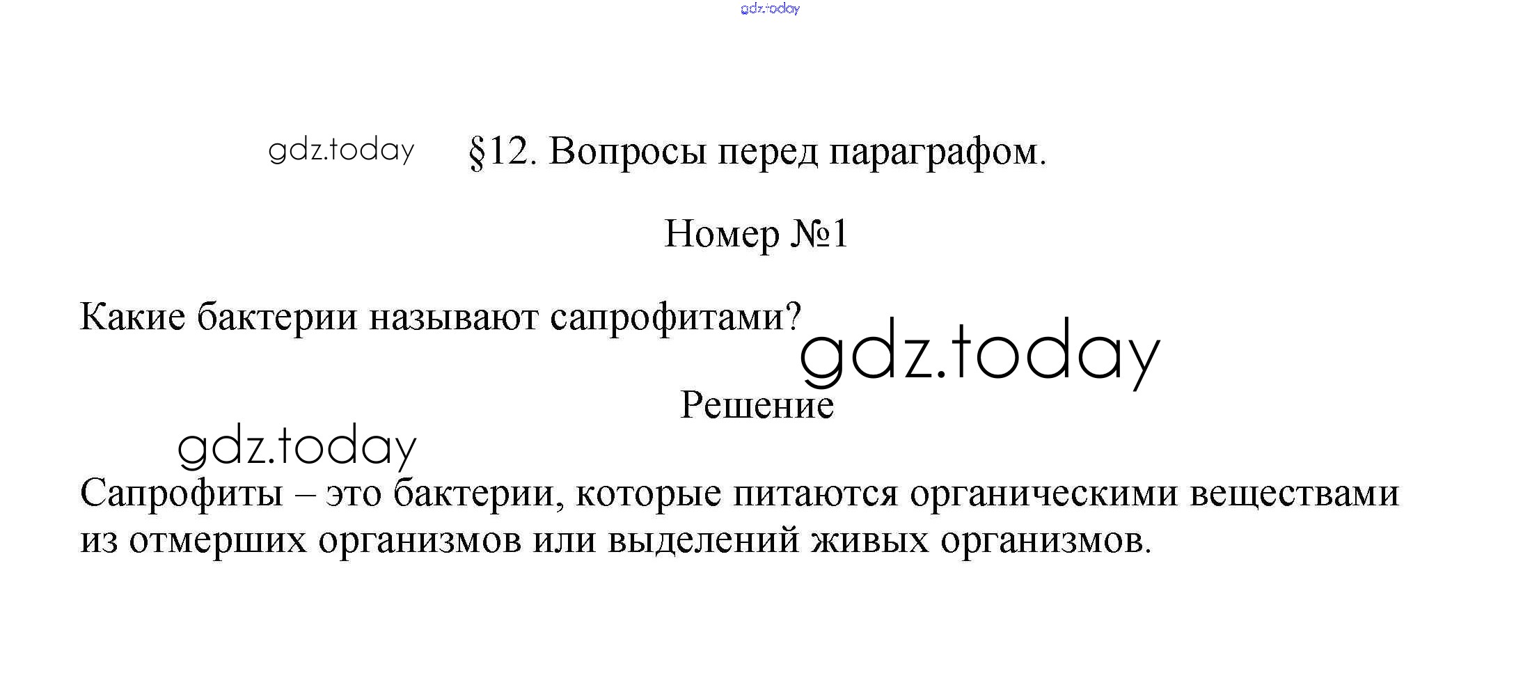 На страницах сайта gdz.today вы найдете учебный и вспомогательный материал, направленный на улучшения знаний школьной программы. ГДЗ - онлайн мир знаний Вопросы в конце параграфа Решение к §12 1 Учебнику по Биологии для 5 класса Пасечник Дрофа УМК 2016