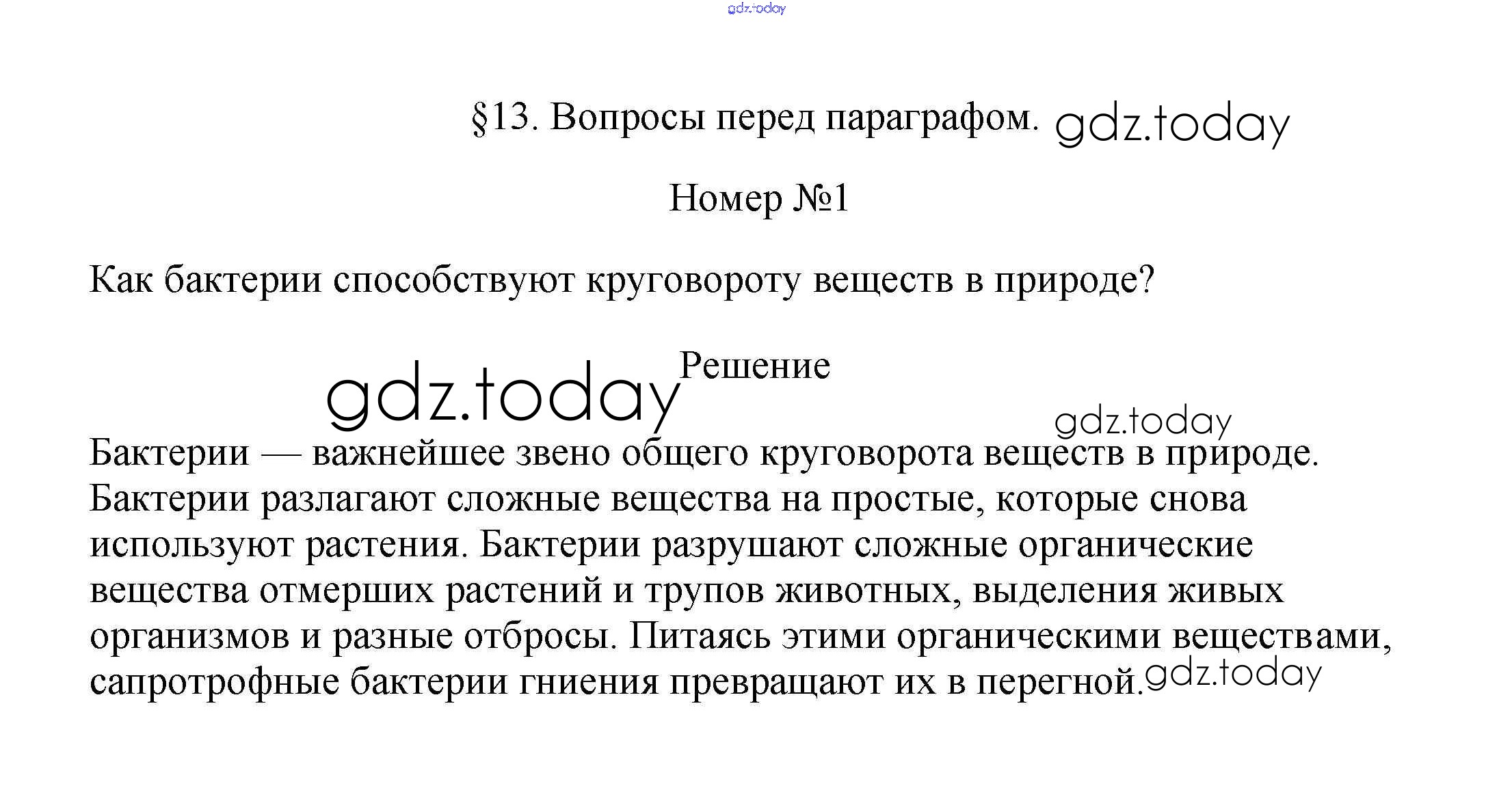 На страницах сайта gdz.today вы найдете учебный и вспомогательный материал, направленный на улучшения знаний школьной программы. ГДЗ - онлайн мир знаний Вопросы в начале параграфа Решение к §13 1 Учебнику по Биологии для 5 класса Пасечник Дрофа УМК 2016