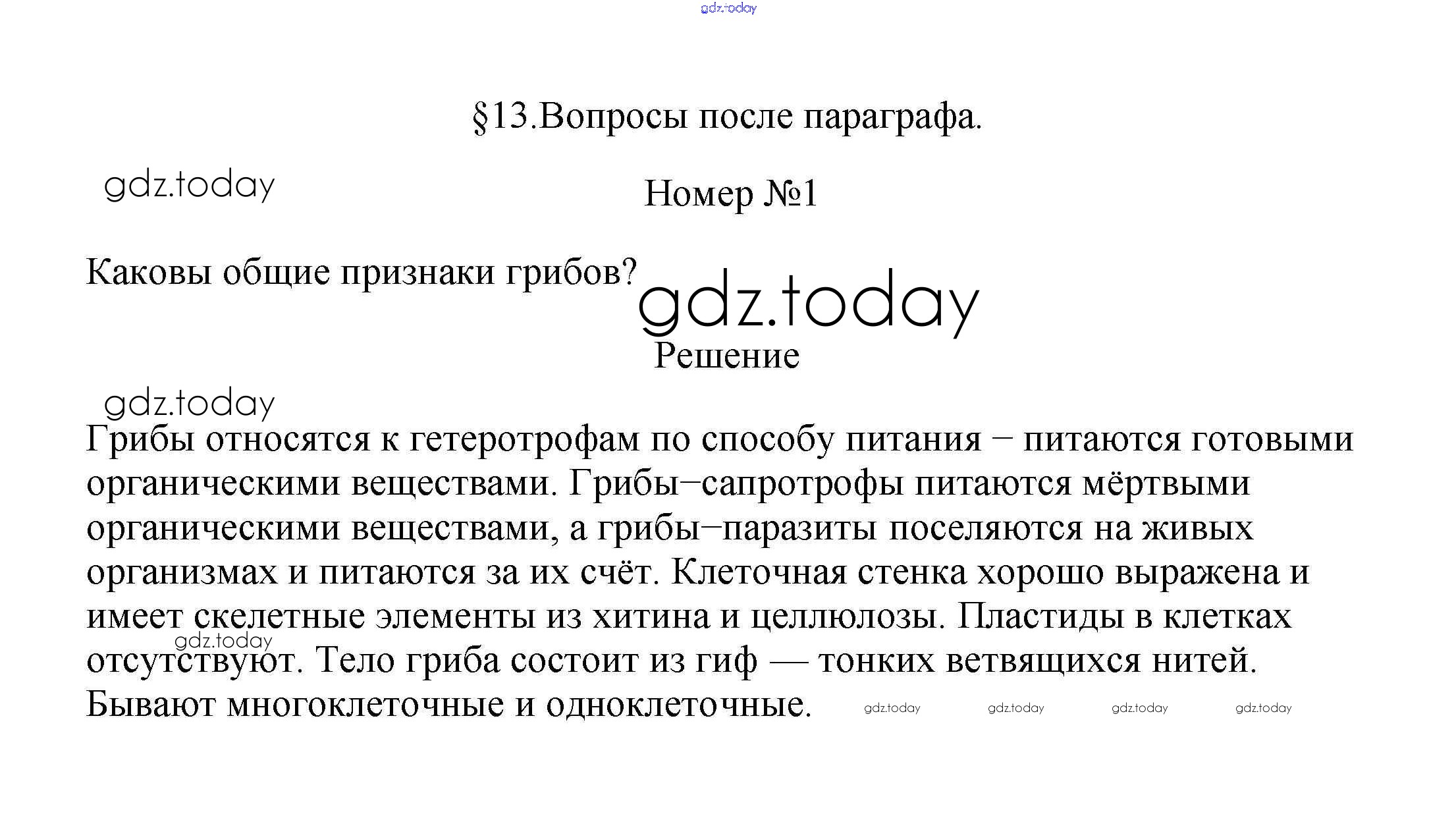 На страницах сайта gdz.today вы найдете учебный и вспомогательный материал, направленный на улучшения знаний школьной программы. ГДЗ - онлайн мир знаний Вопросы в конце параграфа Решение к §13 1 Учебнику по Биологии для 5 класса Пасечник Дрофа УМК 2016