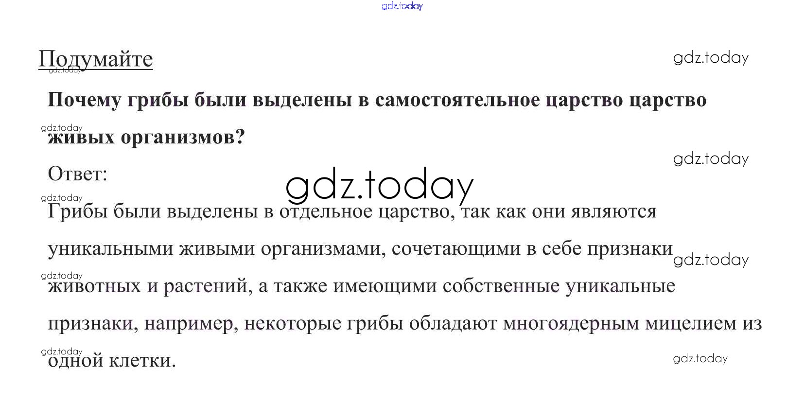 На страницах сайта gdz.today вы найдете учебный и вспомогательный материал, направленный на улучшения знаний школьной программы. ГДЗ - онлайн мир знаний Подумайте Решение к §13 1 Учебнику по Биологии для 5 класса Пасечник Дрофа УМК 2016