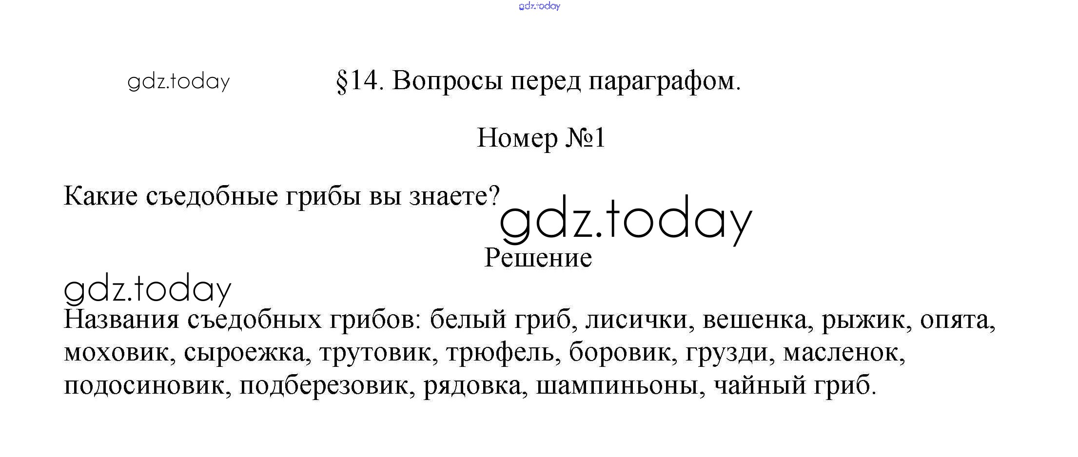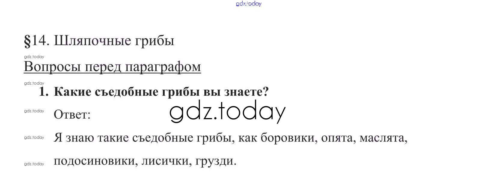 На страницах сайта gdz.today вы найдете учебный и вспомогательный материал, направленный на улучшения знаний школьной программы. ГДЗ - онлайн мир знаний Вопросы в начале параграфа Решение к §14 1 Учебнику по Биологии для 5 класса Пасечник Дрофа УМК 2016