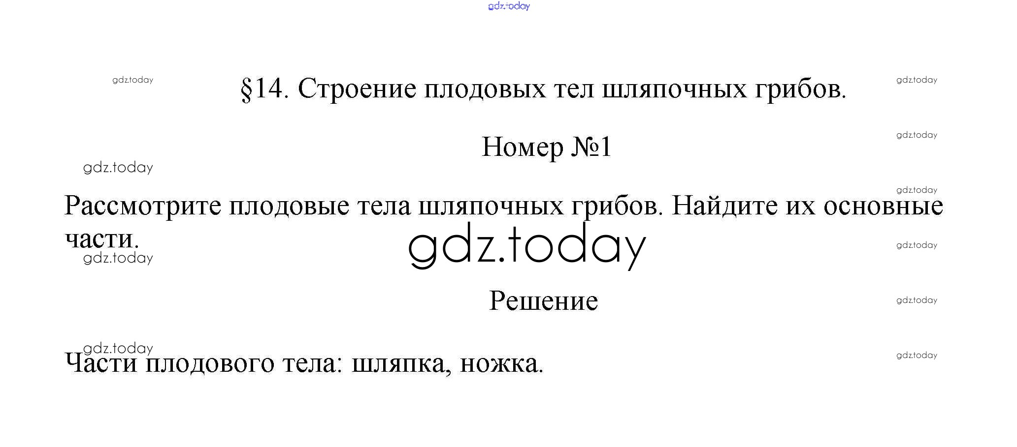 На страницах сайта gdz.today вы найдете учебный и вспомогательный материал, направленный на улучшения знаний школьной программы. ГДЗ - онлайн мир знаний Строение плодовых тел шляпочных грибов Решение к §14 1 Учебнику по Биологии для 5 класса Пасечник Дрофа УМК 2016