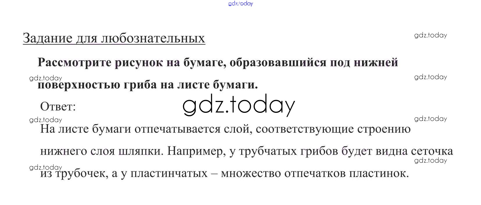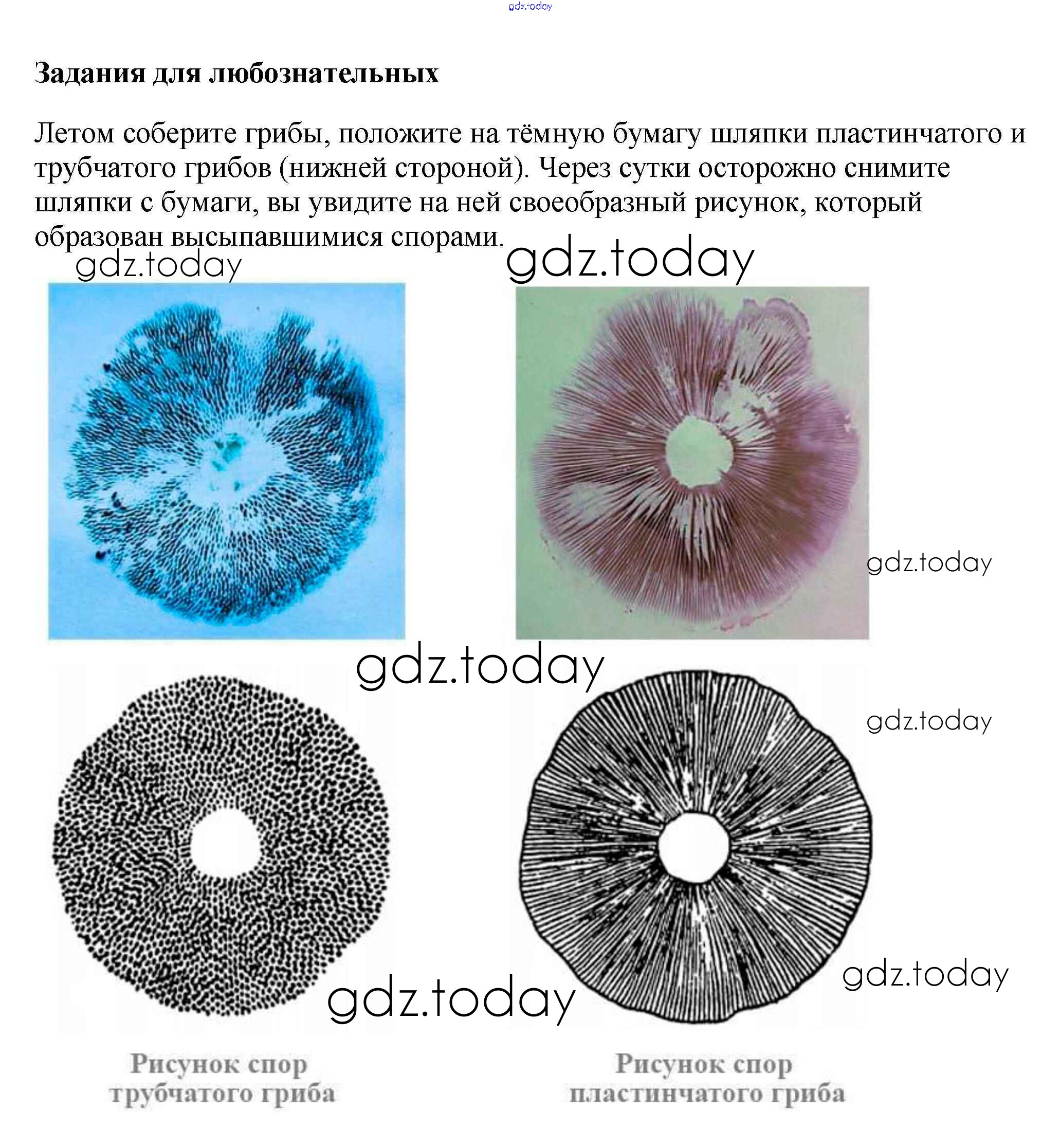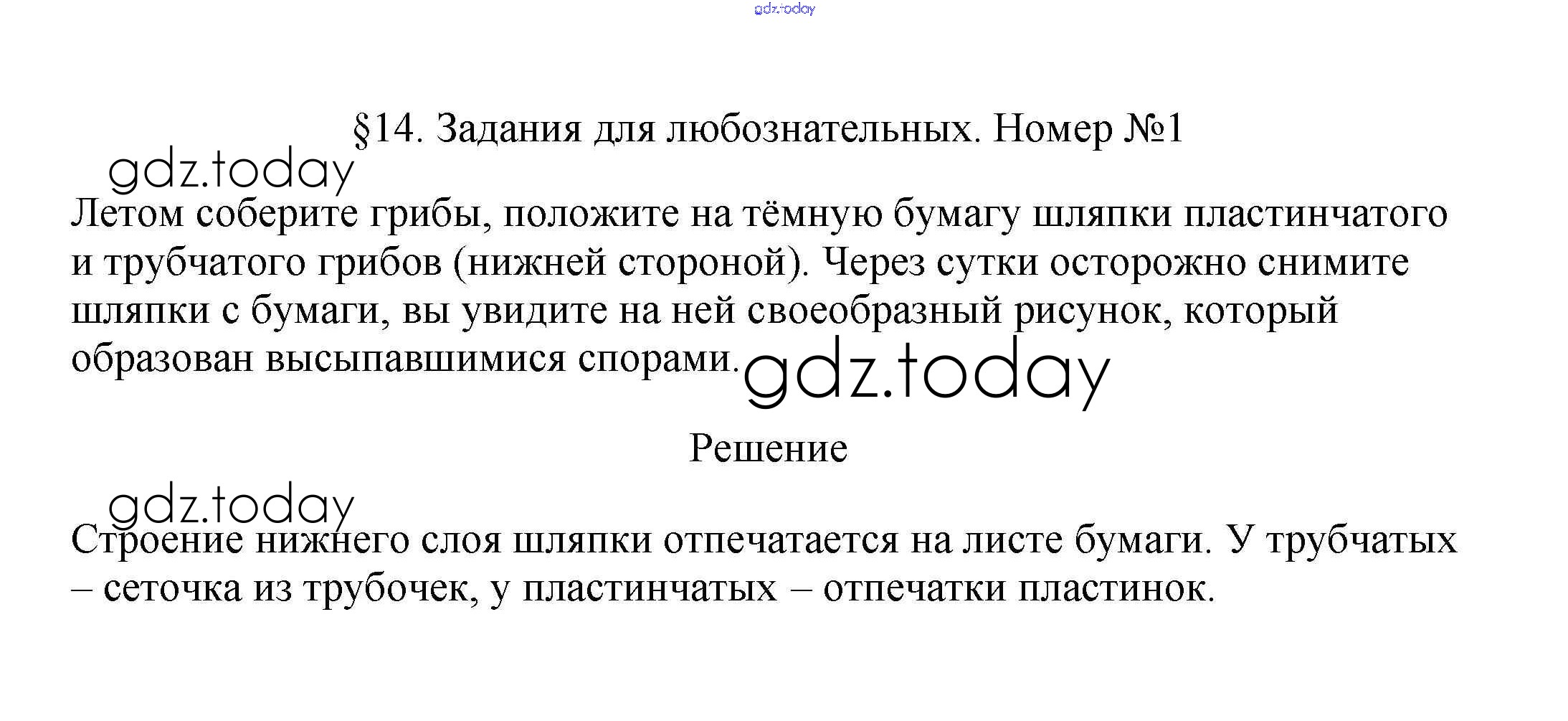 На страницах сайта gdz.today вы найдете учебный и вспомогательный материал, направленный на улучшения знаний школьной программы. ГДЗ - онлайн мир знаний Задания для любознательных Решение к §14 1 Учебнику по Биологии для 5 класса Пасечник Дрофа УМК 2016
