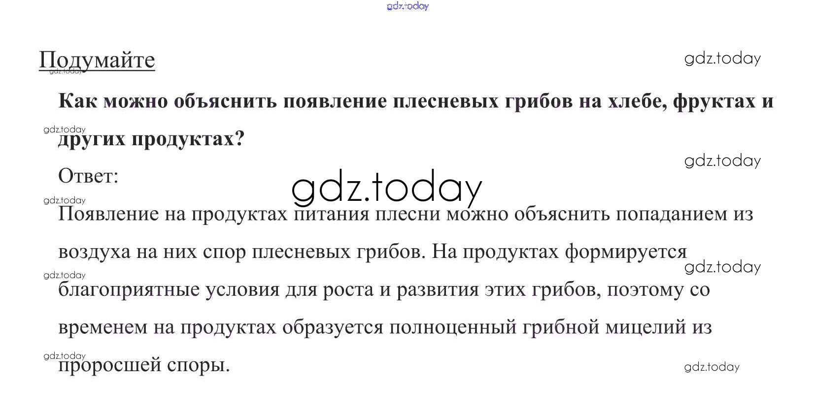 На страницах сайта gdz.today вы найдете учебный и вспомогательный материал, направленный на улучшения знаний школьной программы. ГДЗ - онлайн мир знаний Подумайте Решение к §15 1 Учебнику по Биологии для 5 класса Пасечник Дрофа УМК 2016