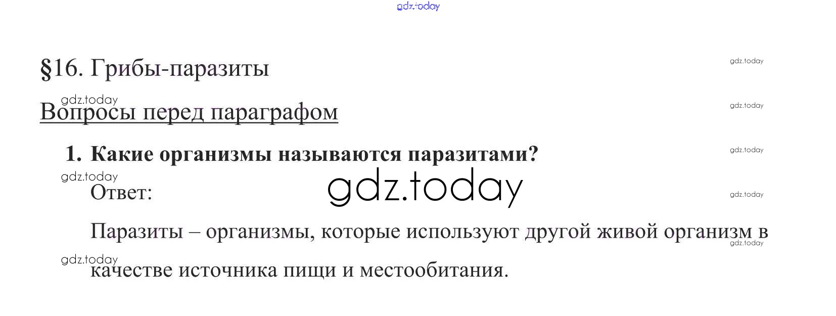 На страницах сайта gdz.today вы найдете учебный и вспомогательный материал, направленный на улучшения знаний школьной программы. ГДЗ - онлайн мир знаний Вопросы в конце параграфа Решение к §16 1 Учебнику по Биологии для 5 класса Пасечник Дрофа УМК 2016