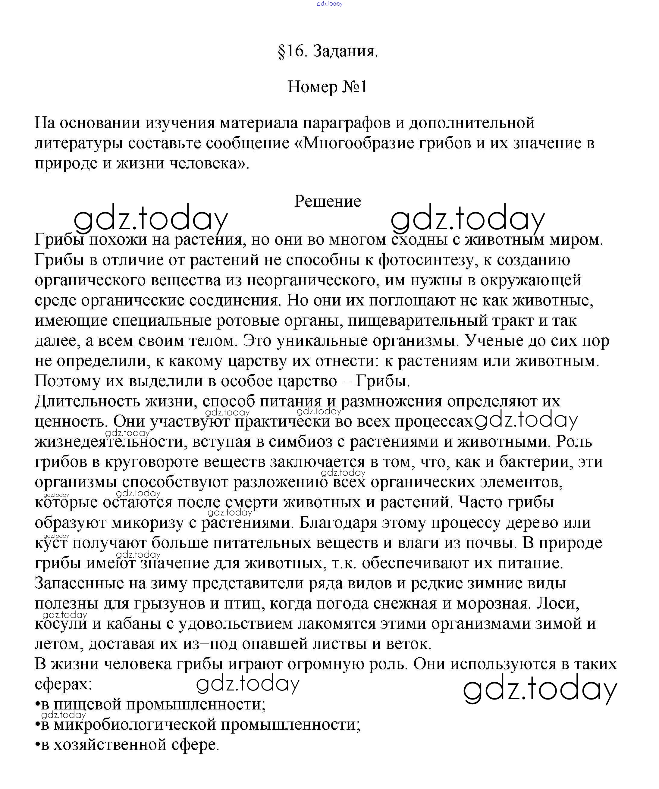 На страницах сайта gdz.today вы найдете учебный и вспомогательный материал, направленный на улучшения знаний школьной программы. ГДЗ - онлайн мир знаний Задания Решение к §16 1 Учебнику по Биологии для 5 класса Пасечник Дрофа УМК 2016