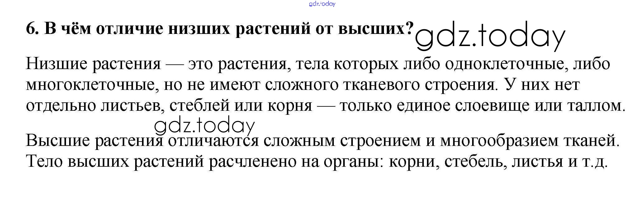 На страницах сайта gdz.today вы найдете учебный и вспомогательный материал, направленный на улучшения знаний школьной программы. ГДЗ - онлайн мир знаний Вопросы в конце параграфа Решение к §17 6 Учебнику по Биологии для 5 класса Пасечник Дрофа УМК 2016
