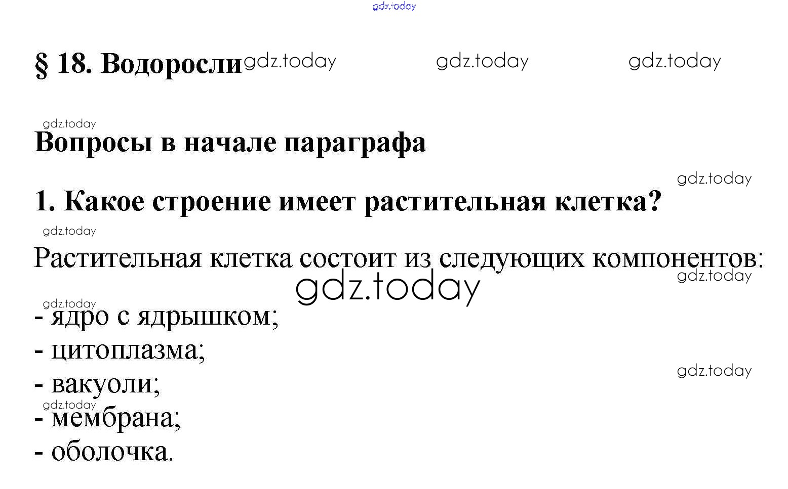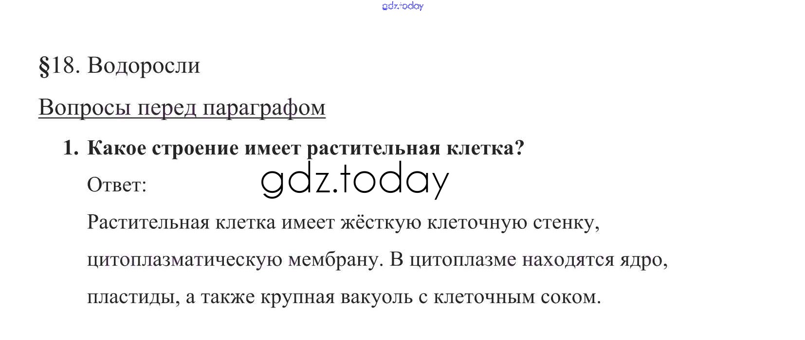 На страницах сайта gdz.today вы найдете учебный и вспомогательный материал, направленный на улучшения знаний школьной программы. ГДЗ - онлайн мир знаний Вопросы в начале параграфа Решение к §18 1 Учебнику по Биологии для 5 класса Пасечник Дрофа УМК 2016