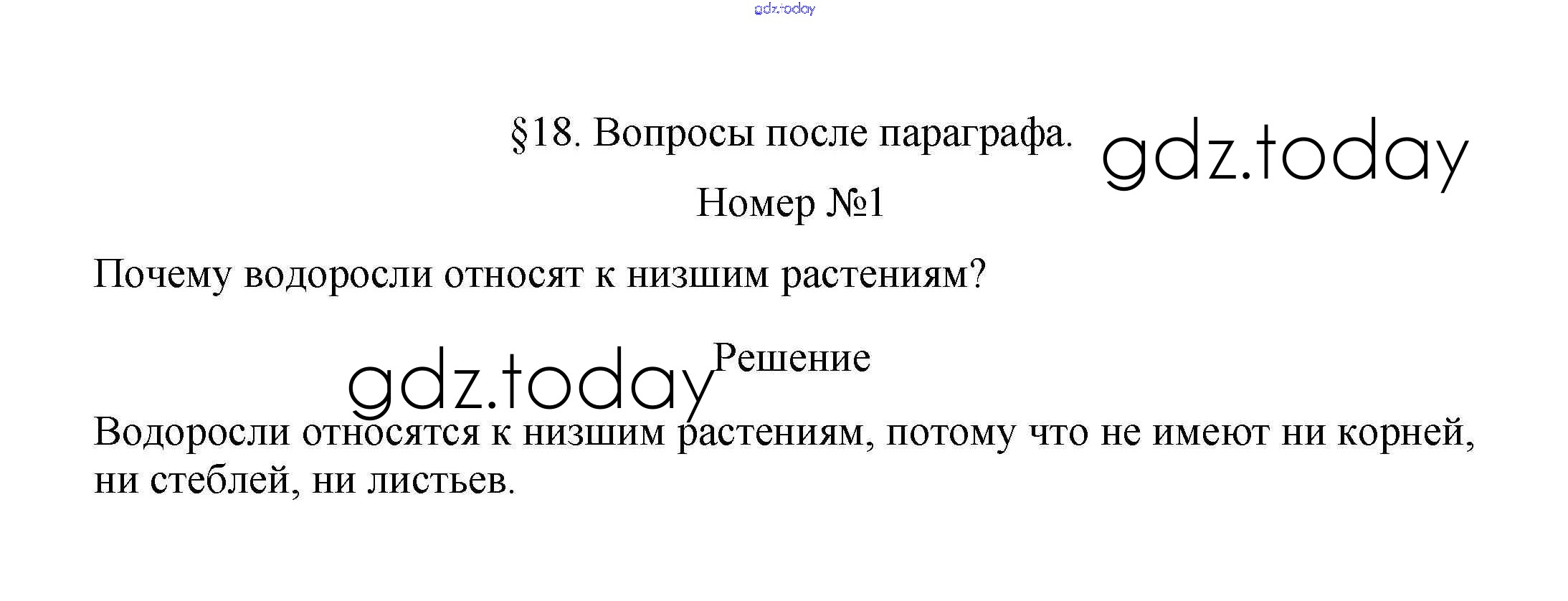 На страницах сайта gdz.today вы найдете учебный и вспомогательный материал, направленный на улучшения знаний школьной программы. ГДЗ - онлайн мир знаний Вопросы в конце параграфа Решение к §18 1 Учебнику по Биологии для 5 класса Пасечник Дрофа УМК 2016