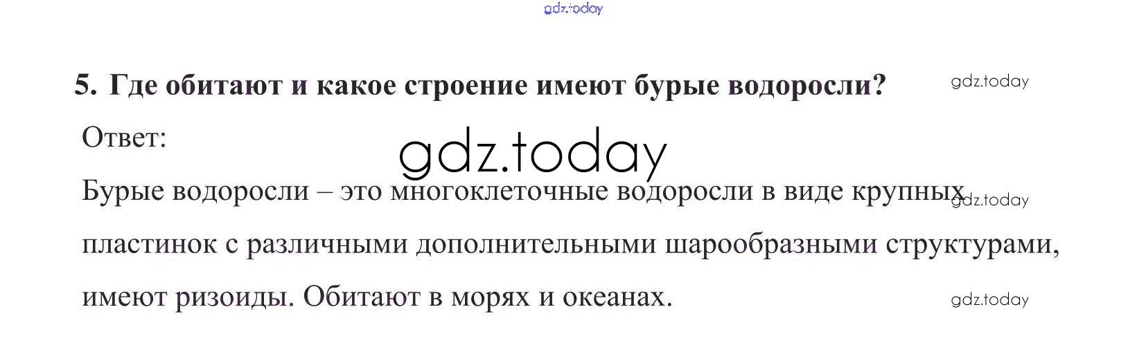 На страницах сайта gdz.today вы найдете учебный и вспомогательный материал, направленный на улучшения знаний школьной программы. ГДЗ - онлайн мир знаний Вопросы в конце параграфа Решение к §18 5 Учебнику по Биологии для 5 класса Пасечник Дрофа УМК 2016