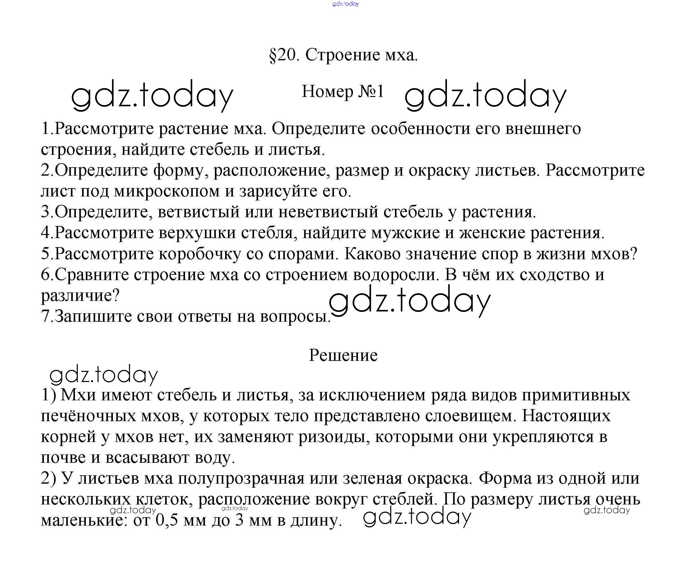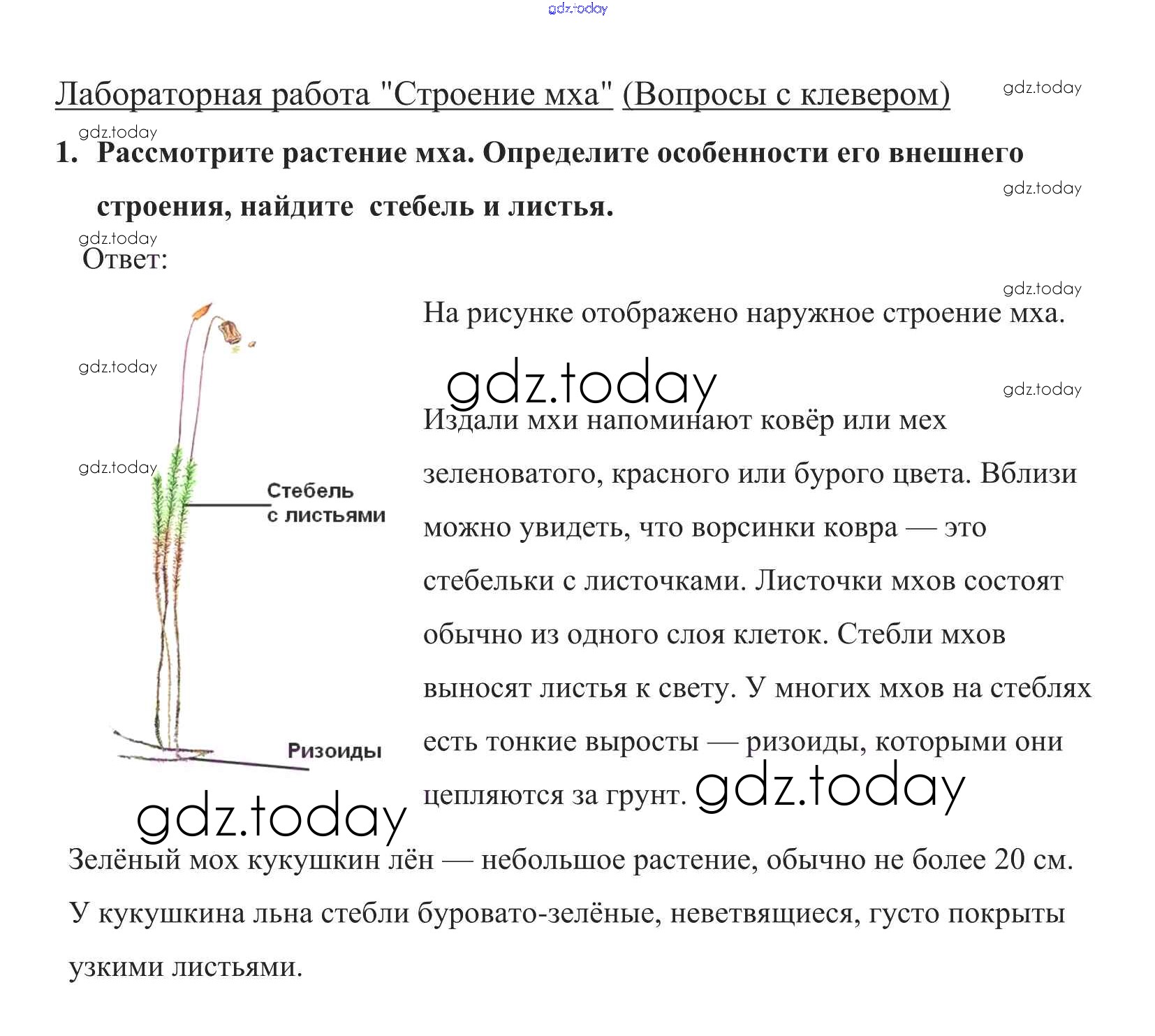 На страницах сайта gdz.today вы найдете учебный и вспомогательный материал, направленный на улучшения знаний школьной программы. ГДЗ - онлайн мир знаний Строение мха Решение к §20 1 Учебнику по Биологии для 5 класса Пасечник Дрофа УМК 2016