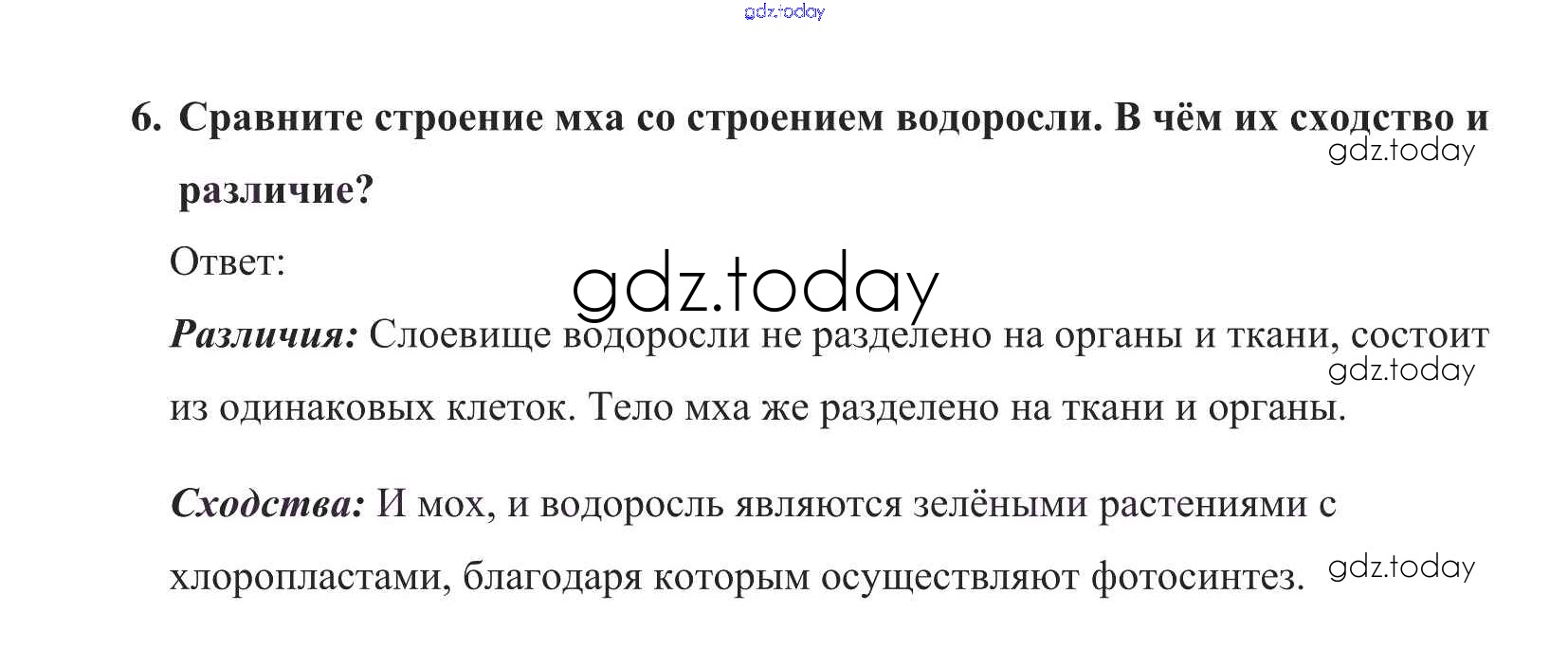 На страницах сайта gdz.today вы найдете учебный и вспомогательный материал, направленный на улучшения знаний школьной программы. ГДЗ - онлайн мир знаний Строение мха Решение к §20 6 Учебнику по Биологии для 5 класса Пасечник Дрофа УМК 2016