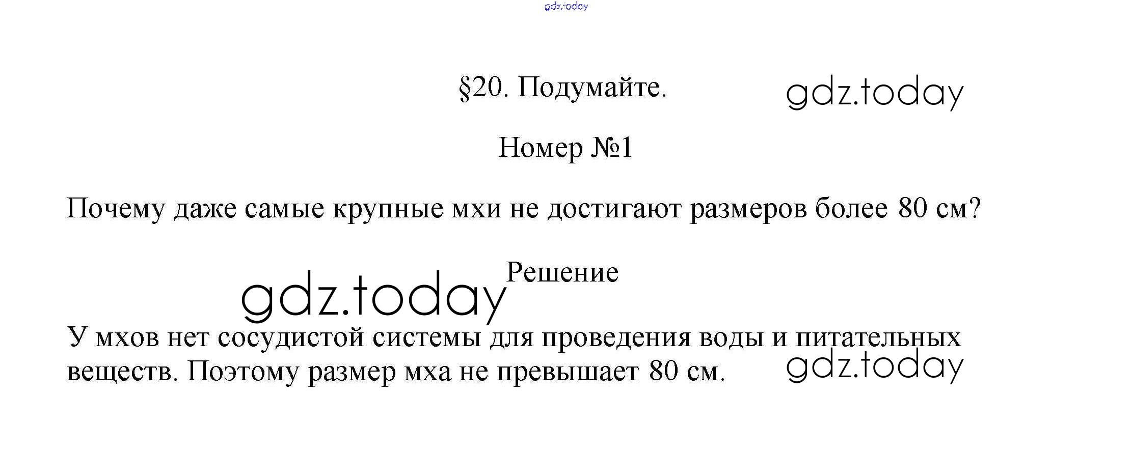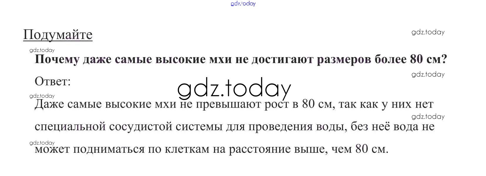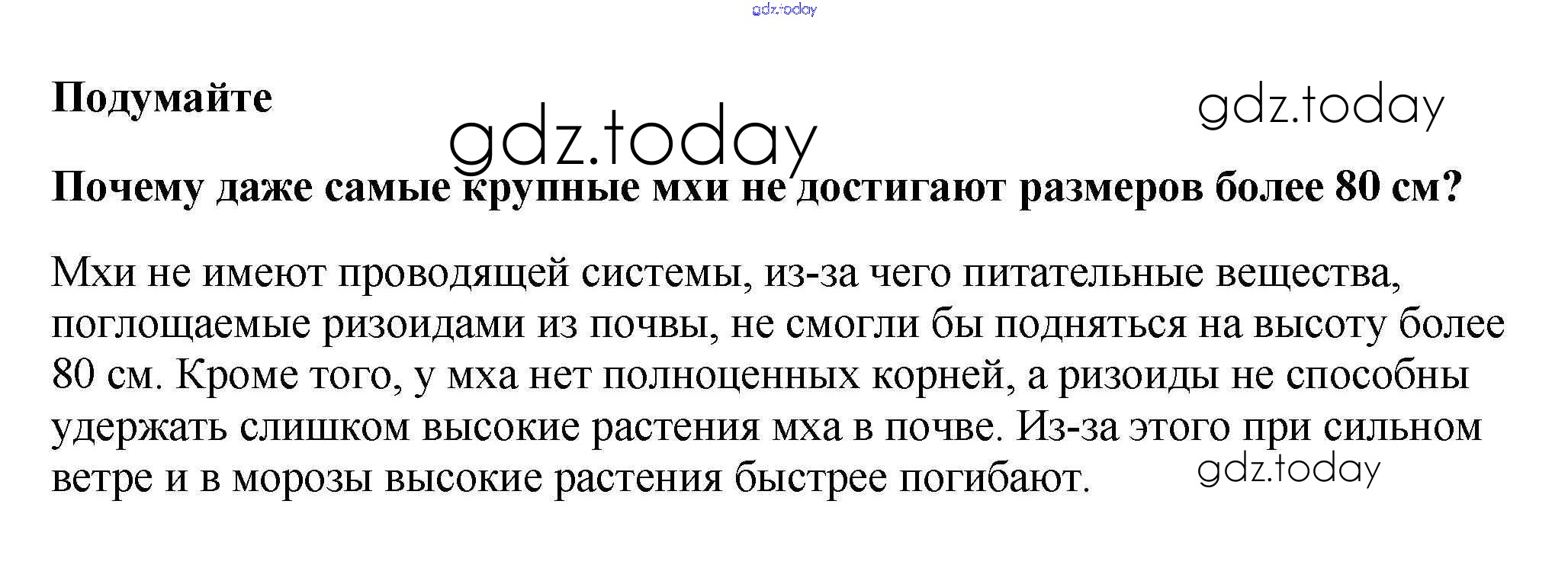 На страницах сайта gdz.today вы найдете учебный и вспомогательный материал, направленный на улучшения знаний школьной программы. ГДЗ - онлайн мир знаний Подумайте Решение к §20 1 Учебнику по Биологии для 5 класса Пасечник Дрофа УМК 2016
