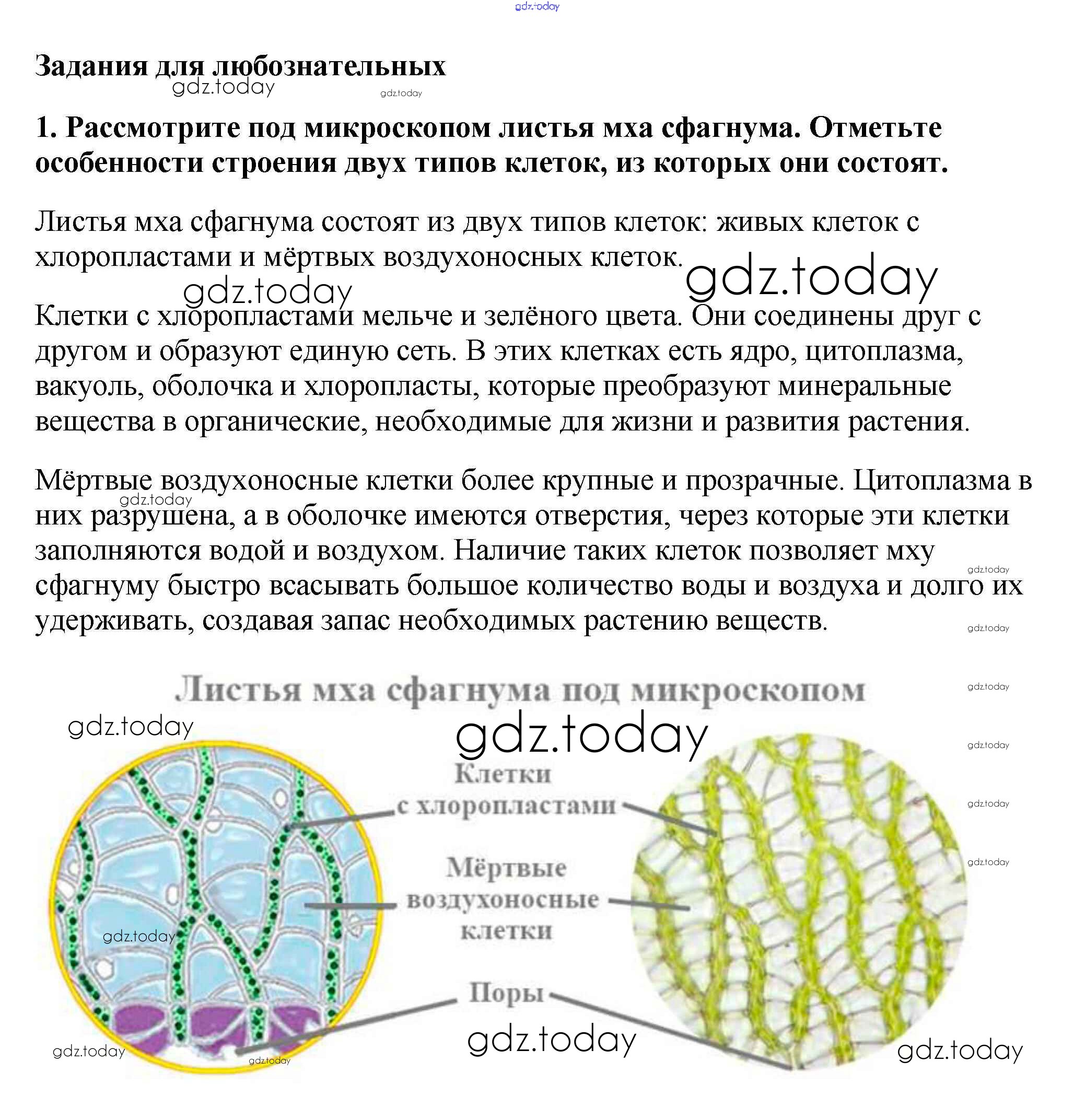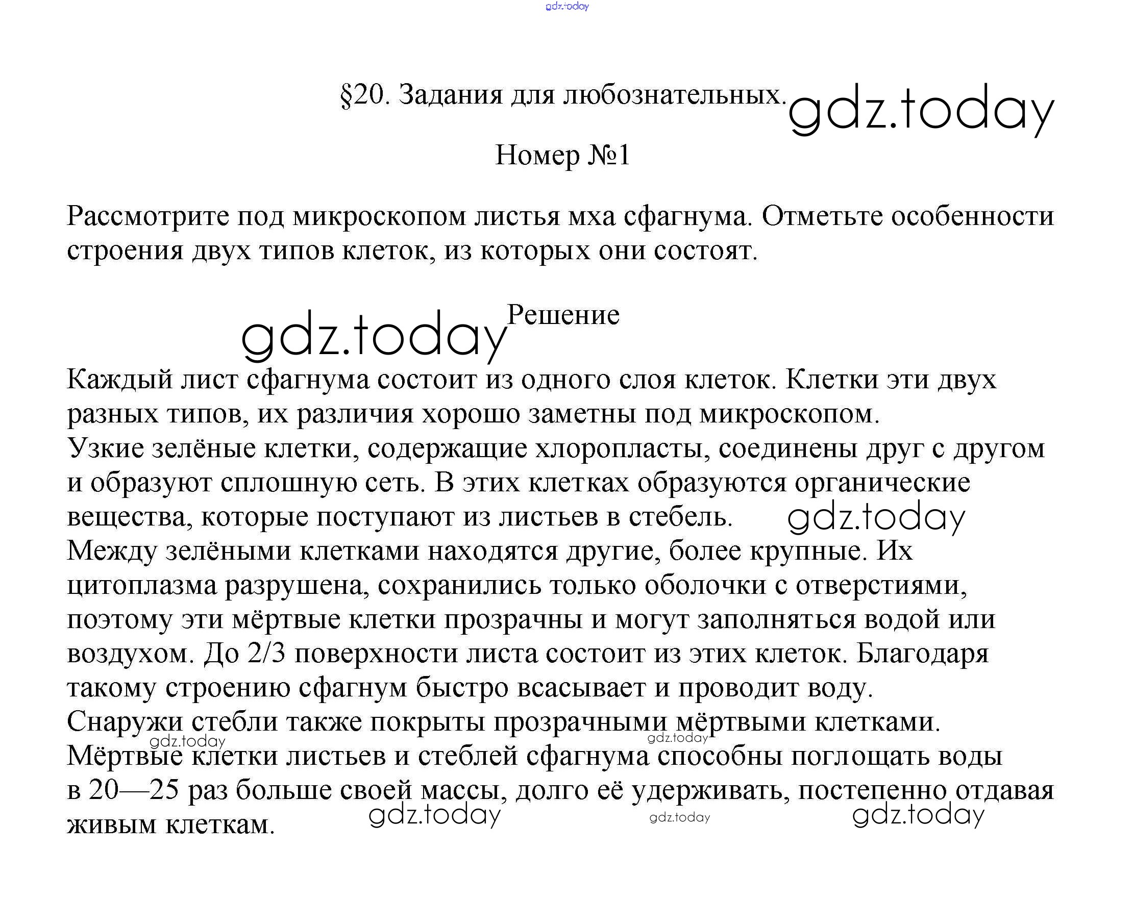 На страницах сайта gdz.today вы найдете учебный и вспомогательный материал, направленный на улучшения знаний школьной программы. ГДЗ - онлайн мир знаний Задания для любознательных Решение к §20 1 Учебнику по Биологии для 5 класса Пасечник Дрофа УМК 2016