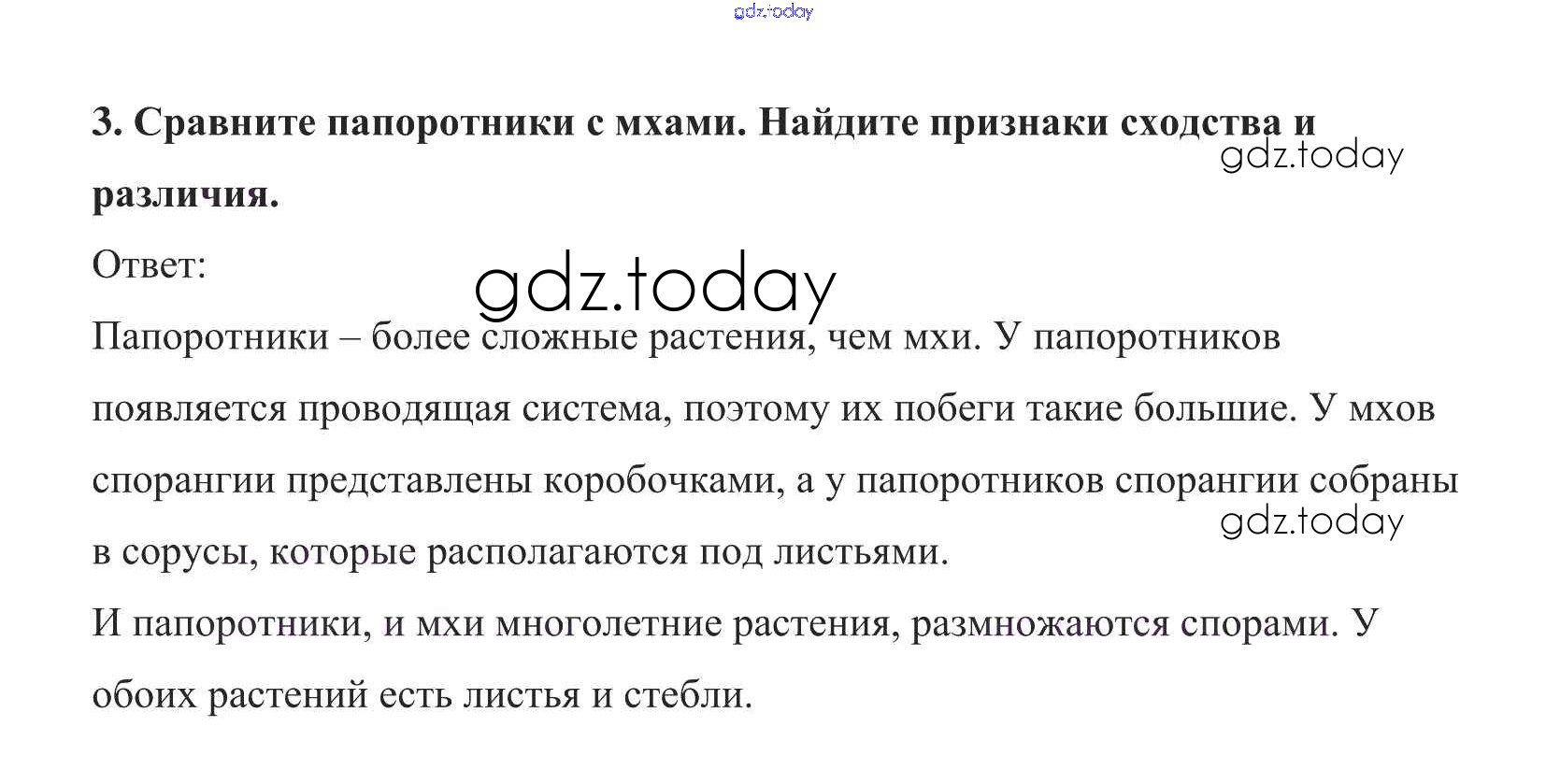 На страницах сайта gdz.today вы найдете учебный и вспомогательный материал, направленный на улучшения знаний школьной программы. ГДЗ - онлайн мир знаний Строение спороносящего папоротника Решение к §21 3 Учебнику по Биологии для 5 класса Пасечник Дрофа УМК 2016