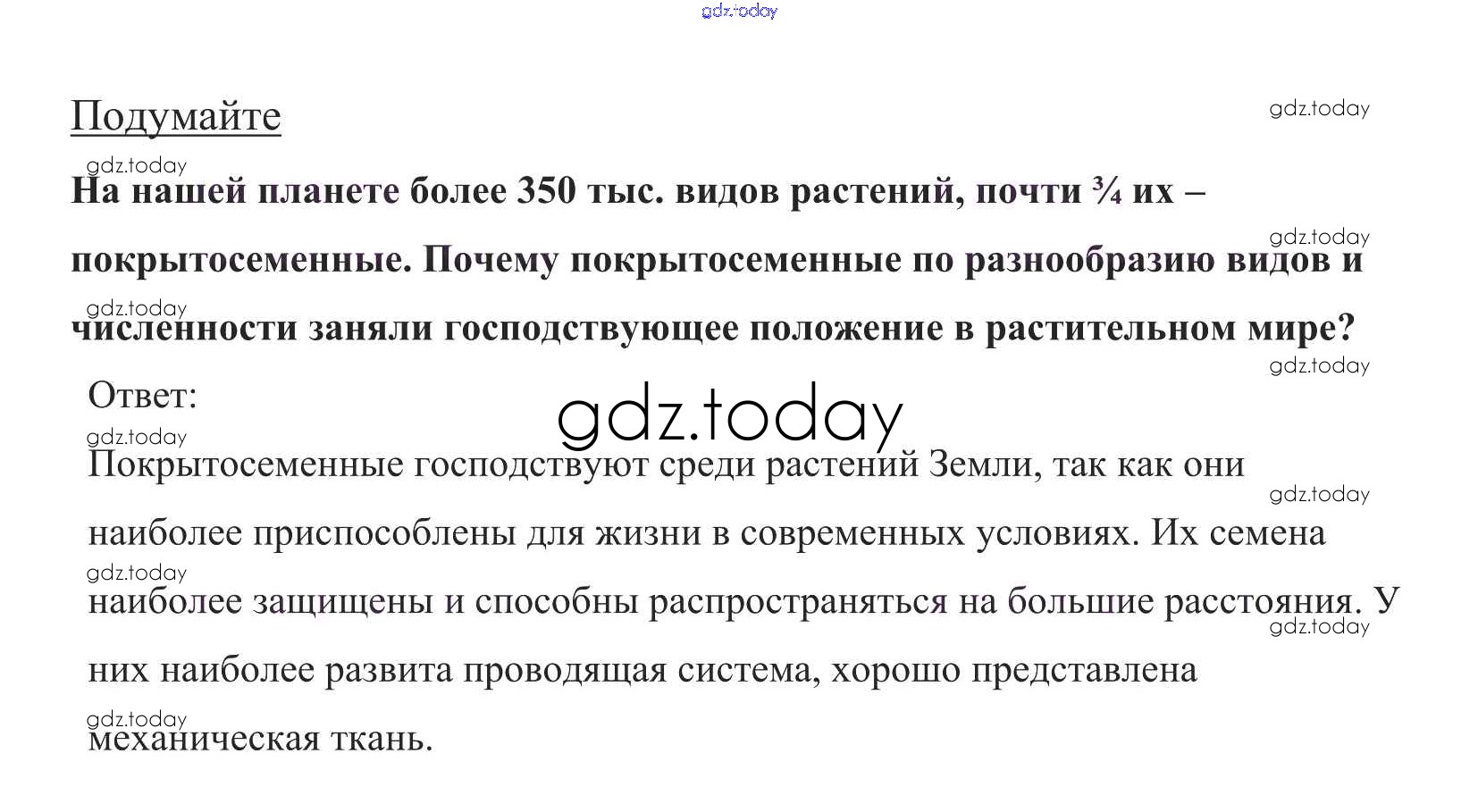 На страницах сайта gdz.today вы найдете учебный и вспомогательный материал, направленный на улучшения знаний школьной программы. ГДЗ - онлайн мир знаний Подумайте Решение к §23 1 Учебнику по Биологии для 5 класса Пасечник Дрофа УМК 2016