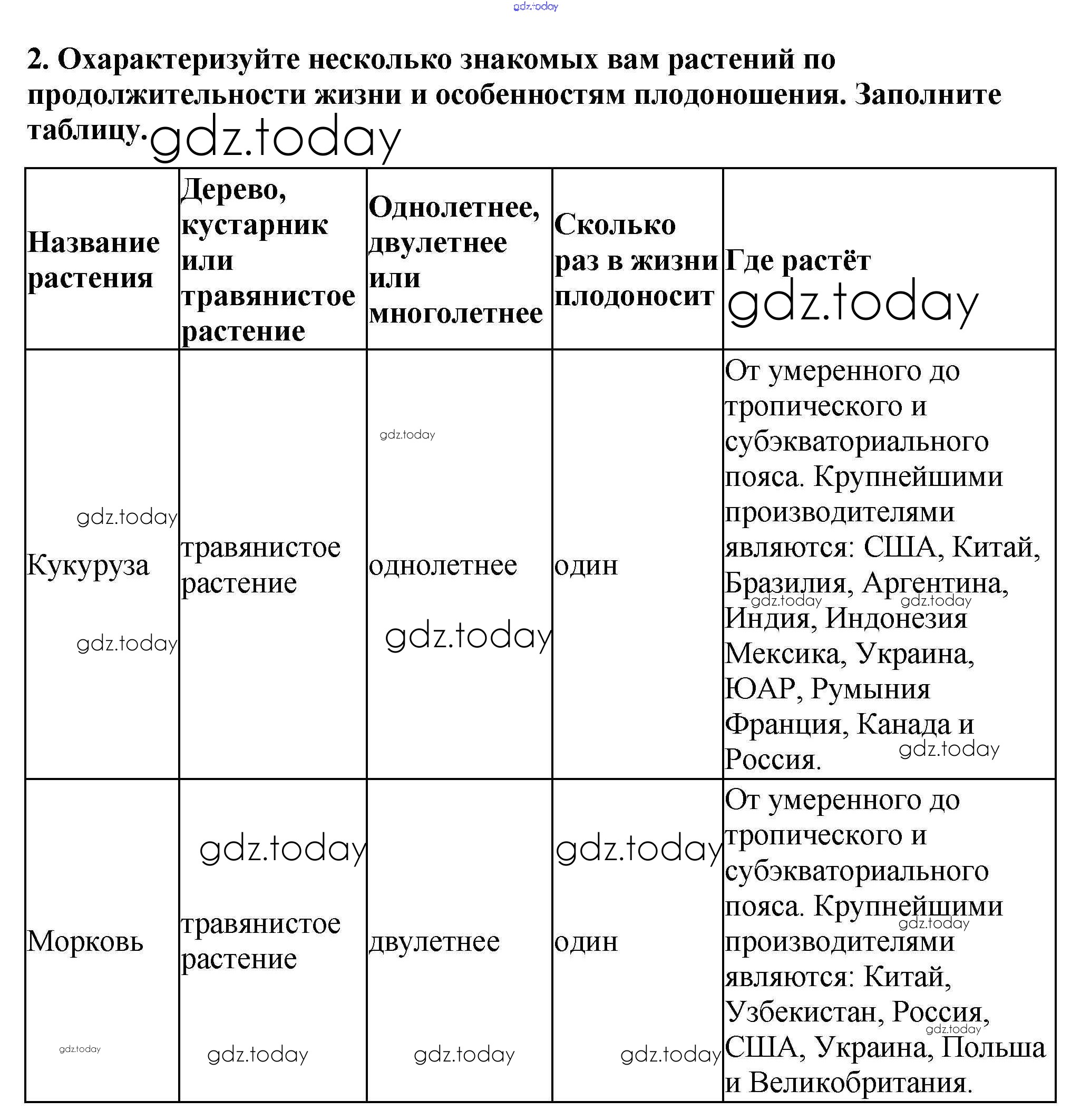 Ответы к Задания Решение к §23 2 Учебнику по Биологии для 5 класса Пасечник Дрофа УМК 2016