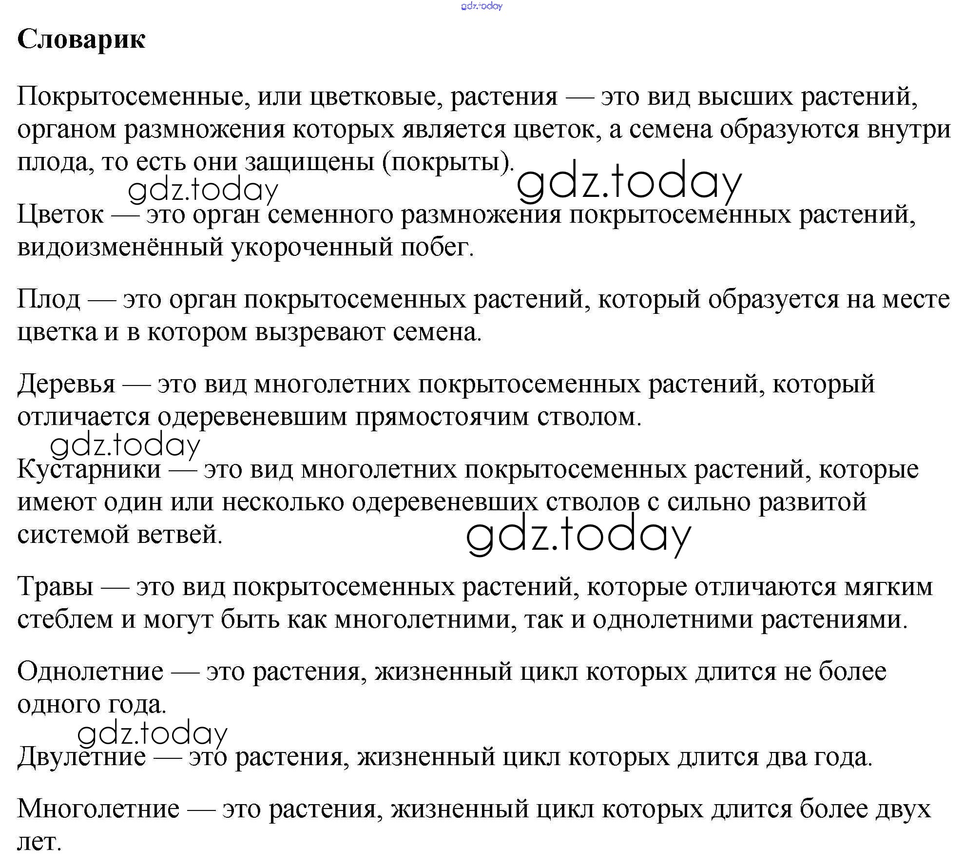 На страницах сайта gdz.today вы найдете учебный и вспомогательный материал, направленный на улучшения знаний школьной программы. ГДЗ - онлайн мир знаний Словарик Решение к §23 1 Учебнику по Биологии для 5 класса Пасечник Дрофа УМК 2016
