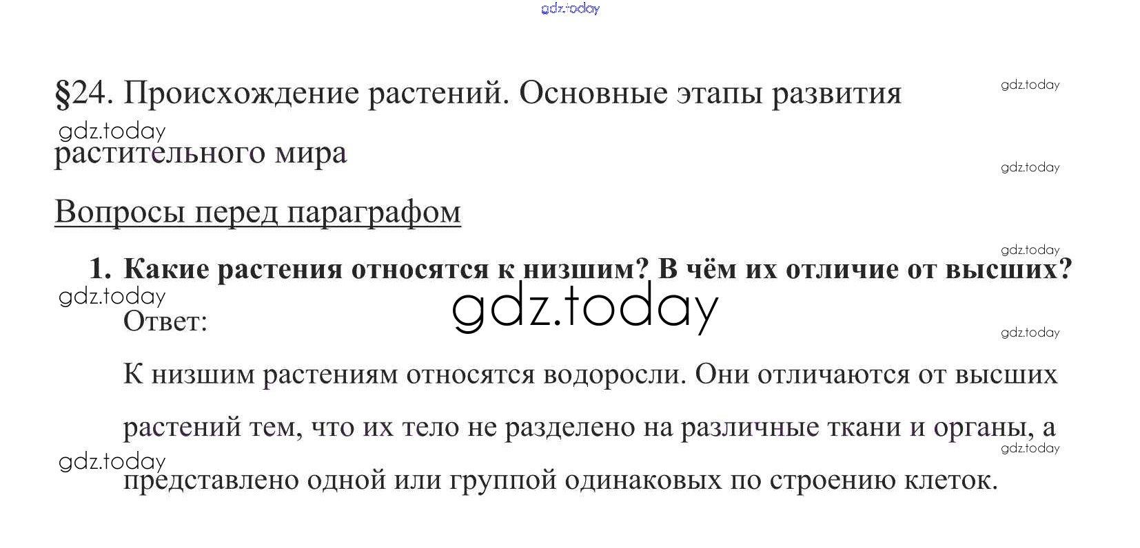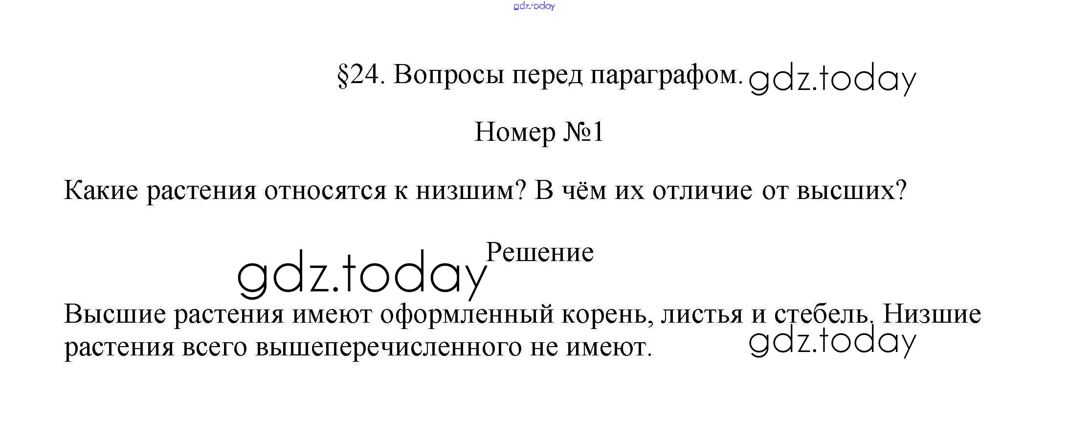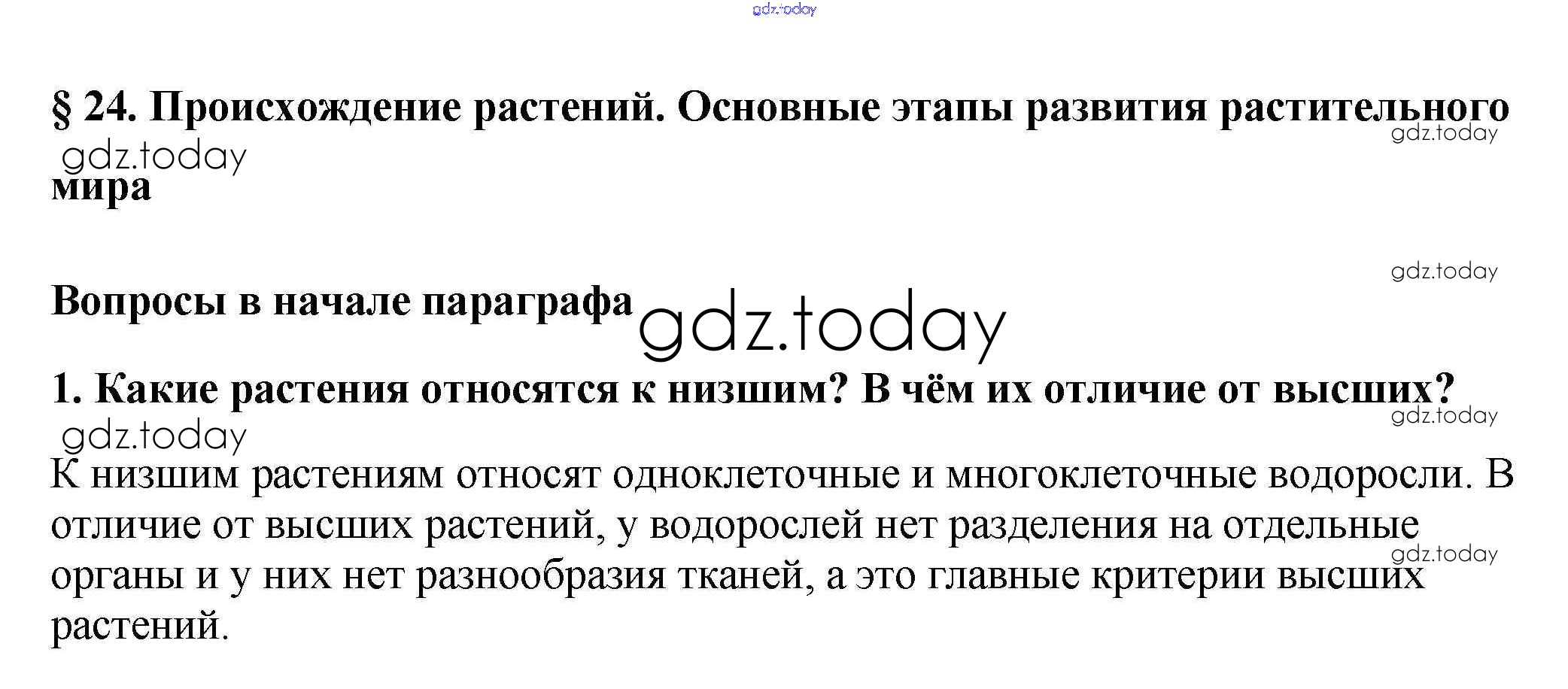 На страницах сайта gdz.today вы найдете учебный и вспомогательный материал, направленный на улучшения знаний школьной программы. ГДЗ - онлайн мир знаний Вопросы в начале параграфа Решение к §24 1 Учебнику по Биологии для 5 класса Пасечник Дрофа УМК 2016