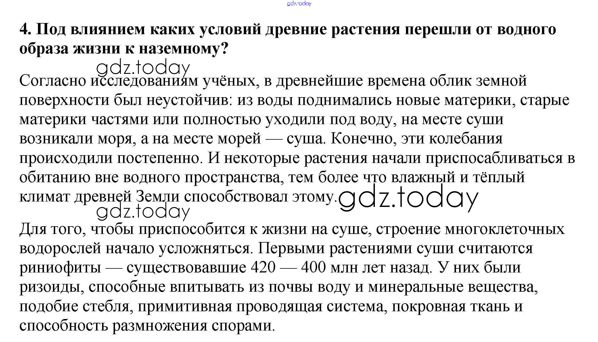 На страницах сайта gdz.today вы найдете учебный и вспомогательный материал, направленный на улучшения знаний школьной программы. ГДЗ - онлайн мир знаний Вопросы в конце параграфа Решение к §24 4 Учебнику по Биологии для 5 класса Пасечник Дрофа УМК 2016