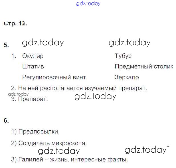 На страницах сайта gdz.today вы найдете учебный и вспомогательный материал, направленный на улучшения знаний школьной программы. ГДЗ - онлайн мир знаний Страницы (решение) 12 Рабочей тетради по Биологии для 5 класса Корнилова, Симонова Вентана-граф 2020