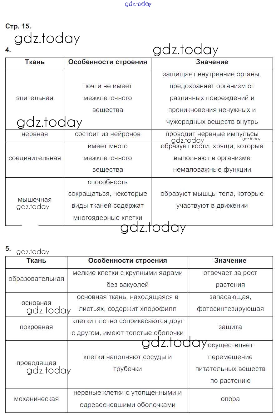На страницах сайта gdz.today вы найдете учебный и вспомогательный материал, направленный на улучшения знаний школьной программы. ГДЗ - онлайн мир знаний Страницы (решение) 15 Рабочей тетради по Биологии для 5 класса Корнилова, Симонова Вентана-граф 2020