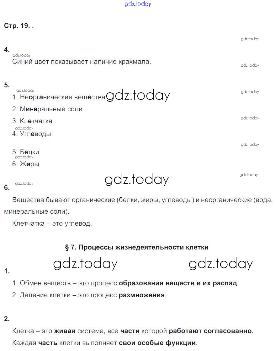На страницах сайта gdz.today вы найдете учебный и вспомогательный материал, направленный на улучшения знаний школьной программы. ГДЗ - онлайн мир знаний Страницы (решение) 19 Рабочей тетради по Биологии для 5 класса Корнилова, Симонова Вентана-граф 2020