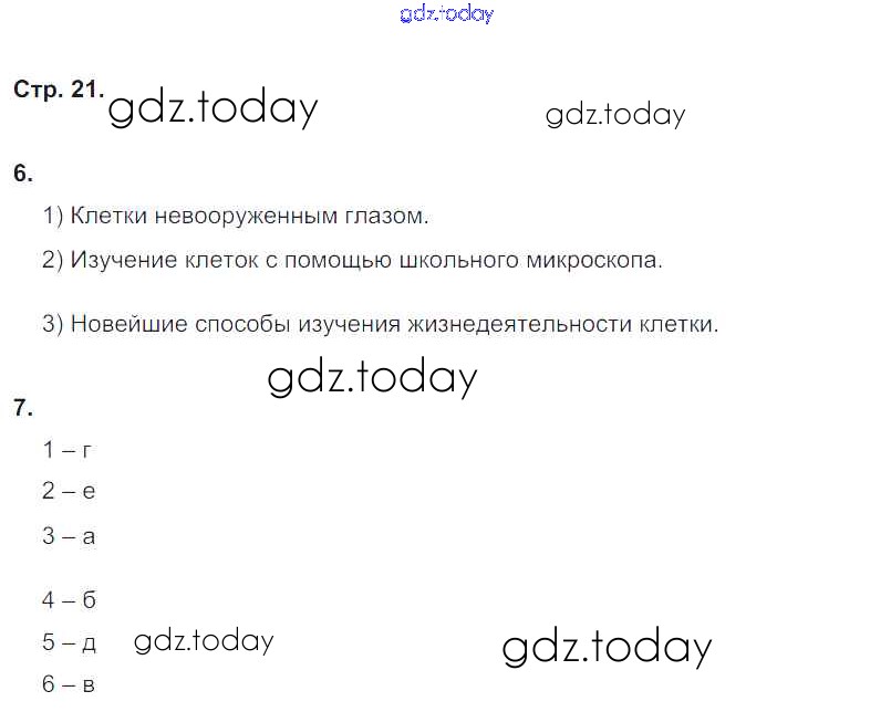 На страницах сайта gdz.today вы найдете учебный и вспомогательный материал, направленный на улучшения знаний школьной программы. ГДЗ - онлайн мир знаний Страницы (решение) 21 Рабочей тетради по Биологии для 5 класса Корнилова, Симонова Вентана-граф 2020