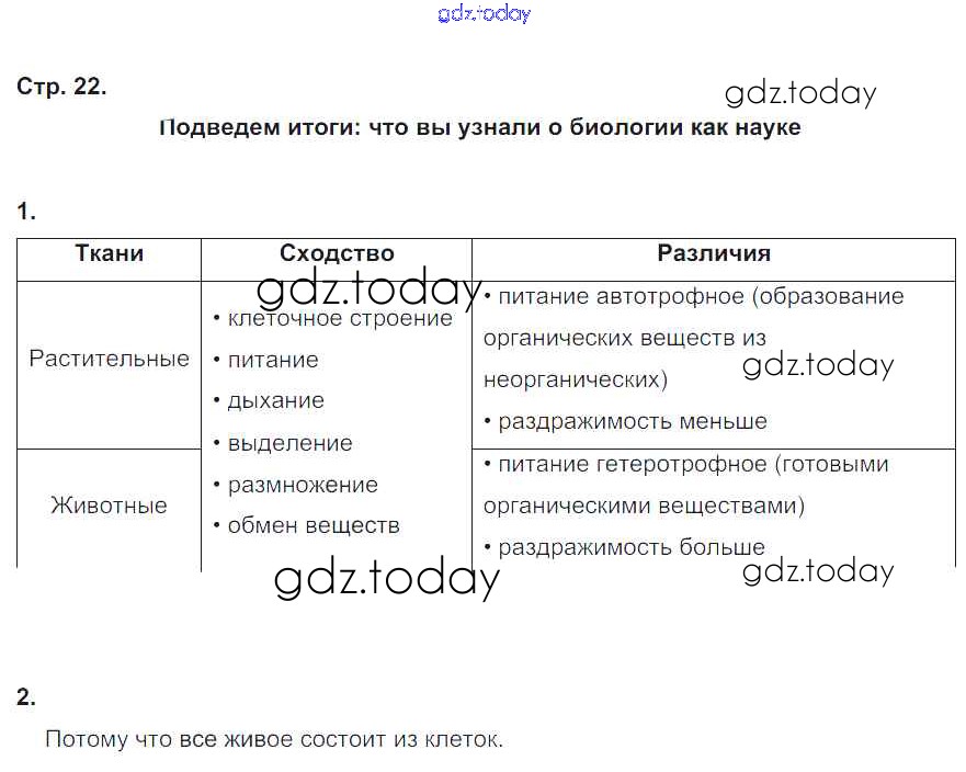На страницах сайта gdz.today вы найдете учебный и вспомогательный материал, направленный на улучшения знаний школьной программы. ГДЗ - онлайн мир знаний Страницы (решение) 22 Рабочей тетради по Биологии для 5 класса Корнилова, Симонова Вентана-граф 2020