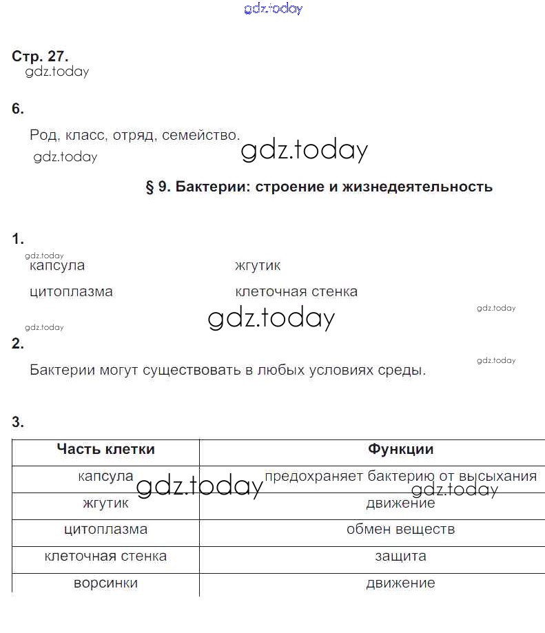 Ответы к Страницы (решение) 27 Рабочей тетради по Биологии для 5 класса Корнилова, Симонова Вентана-граф 2020