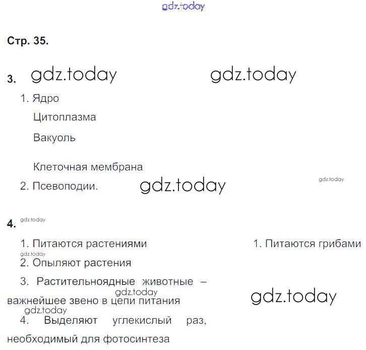 На страницах сайта gdz.today вы найдете учебный и вспомогательный материал, направленный на улучшения знаний школьной программы. ГДЗ - онлайн мир знаний Страницы (решение) 35 Рабочей тетради по Биологии для 5 класса Корнилова, Симонова Вентана-граф 2020