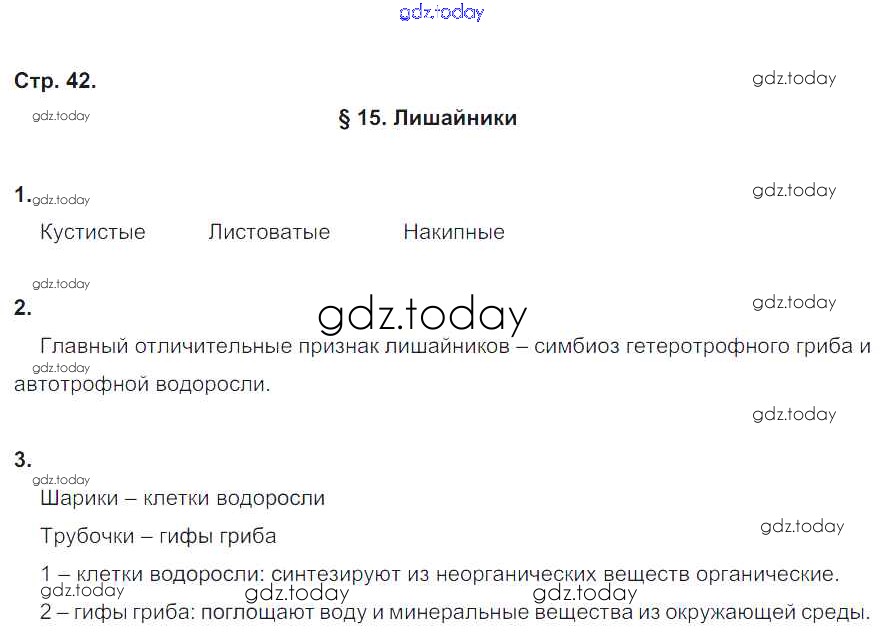 На страницах сайта gdz.today вы найдете учебный и вспомогательный материал, направленный на улучшения знаний школьной программы. ГДЗ - онлайн мир знаний Страницы (решение) 42 Рабочей тетради по Биологии для 5 класса Корнилова, Симонова Вентана-граф 2020